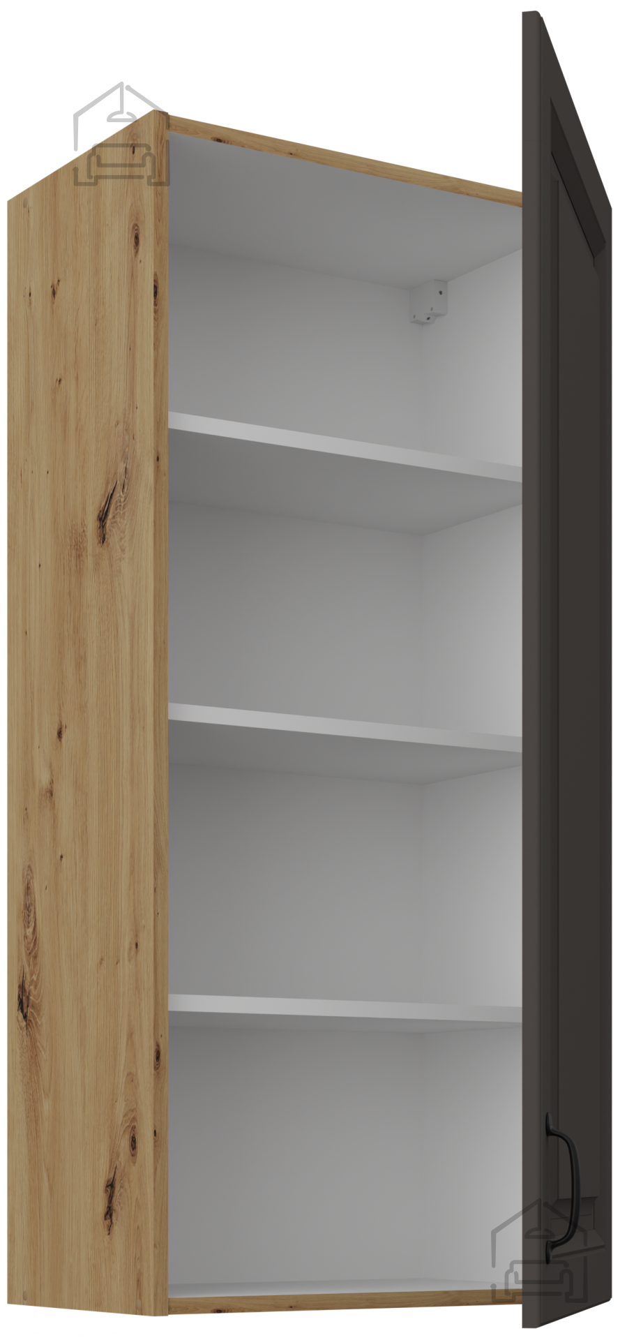V sodobnih kuhinjah, kjer se estetika prepleta s funkcionalnostjo, je pomembno izbrati pohištvo, ki združuje lepoto, kakovost in praktično uporabnost. Prav tak vtis ustvarja zgornja omara Stilo v trendovski kombinaciji barv siva/hrast artisan. Njena minimalistična oblika, elegantne linije in naravni videz lesa se popolno zlijejo z različnimi slogi opreme – od skandinavske preprostosti do klasične topline domače kuhinje. Narejena je iz visokokakovostne laminirane plošče, ki zagotavlja dolgo življenjsko dobo in odpornost na vsakodnevne obremenitve, kar jo dela idealno izbiro za vsako sodobno gospodinjstvo.