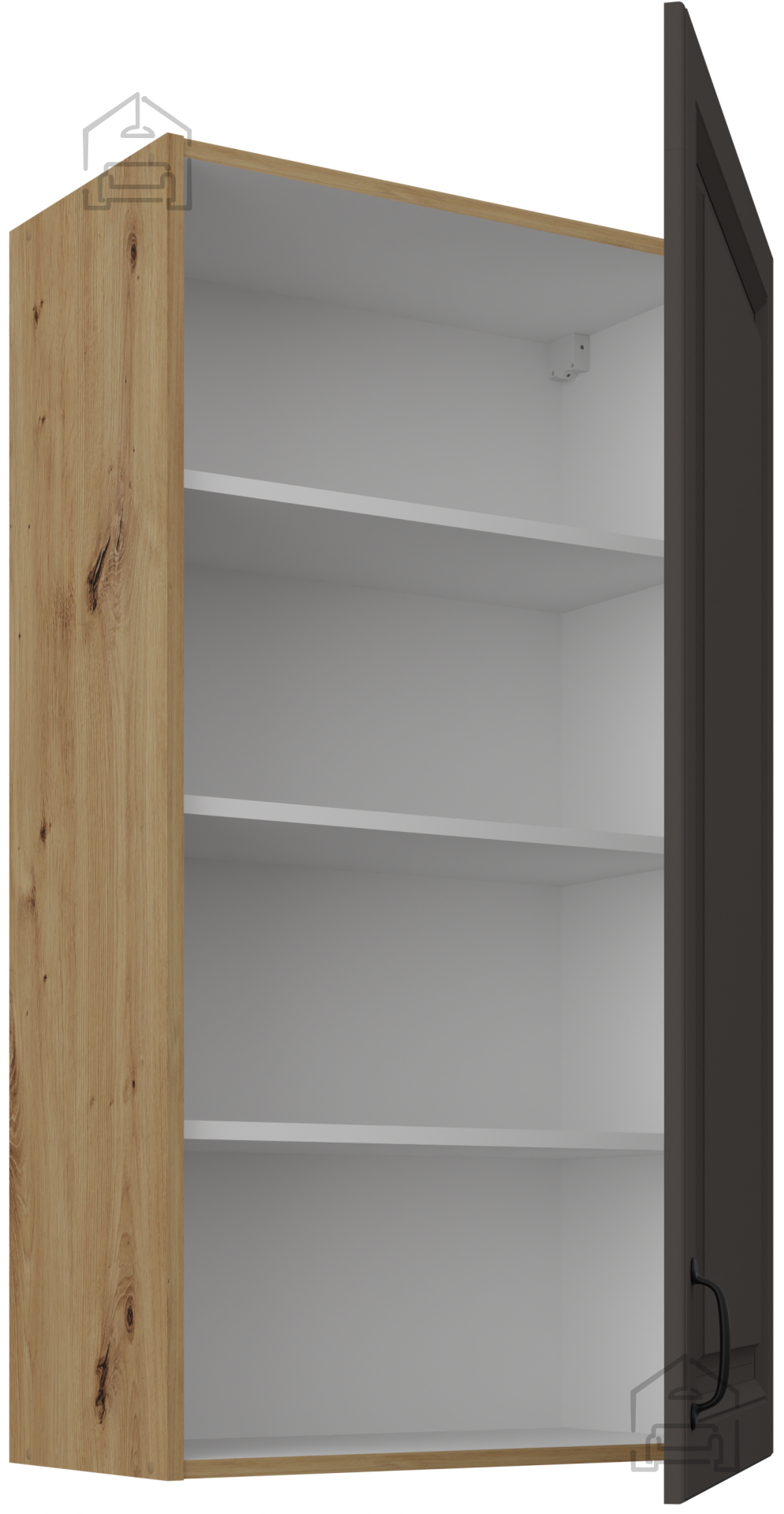 V sodobnih kuhinjah, kjer se estetika prepleta s funkcionalnostjo, je pomembno izbrati pohištvo, ki združuje lepoto, kakovost in praktično uporabnost. Prav tak vtis ustvarja zgornja omara Stilo v trendovski kombinaciji barv siva/hrast artisan. Njena minimalistična oblika, elegantne linije in naravni videz lesa se popolno zlijejo z različnimi slogi opreme – od skandinavske preprostosti do klasične topline domače kuhinje. Narejena je iz visokokakovostne laminirane plošče, ki zagotavlja dolgo življenjsko dobo in odpornost na vsakodnevne obremenitve, kar jo dela idealno izbiro za vsako sodobno gospodinjstvo.