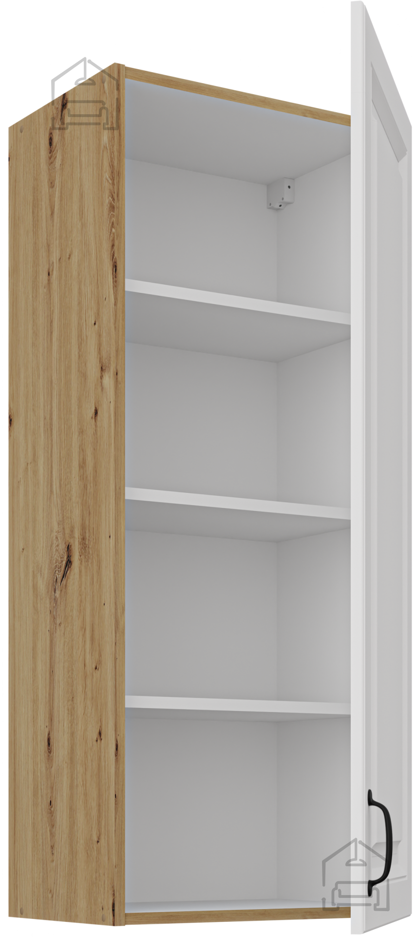 Popolna izbira za vse, ki cenijo eleganco, funkcionalnost in kakovostno izdelavo. Ta zgornja omara prinaša v vašo kuhinjo pridih sodobnega skandinavskega šarma, združenega z naravno toplino lesa. Kombinacija nežne bele barve in prefinjenega dekorja hrasta artisan ustvarja harmonično ravnovesje med svetlobo in teksturo, ki se popolnoma prilega tako modernim kot tudi klasičnim kuhinjskim prostorom. Zaradi premišljeno zasnovanih detajlov in kakovostnih materialov bo omara postala nepogrešljiv del vaše vsakodnevne rutine – lepa na pogled in izjemno praktična v uporabi.