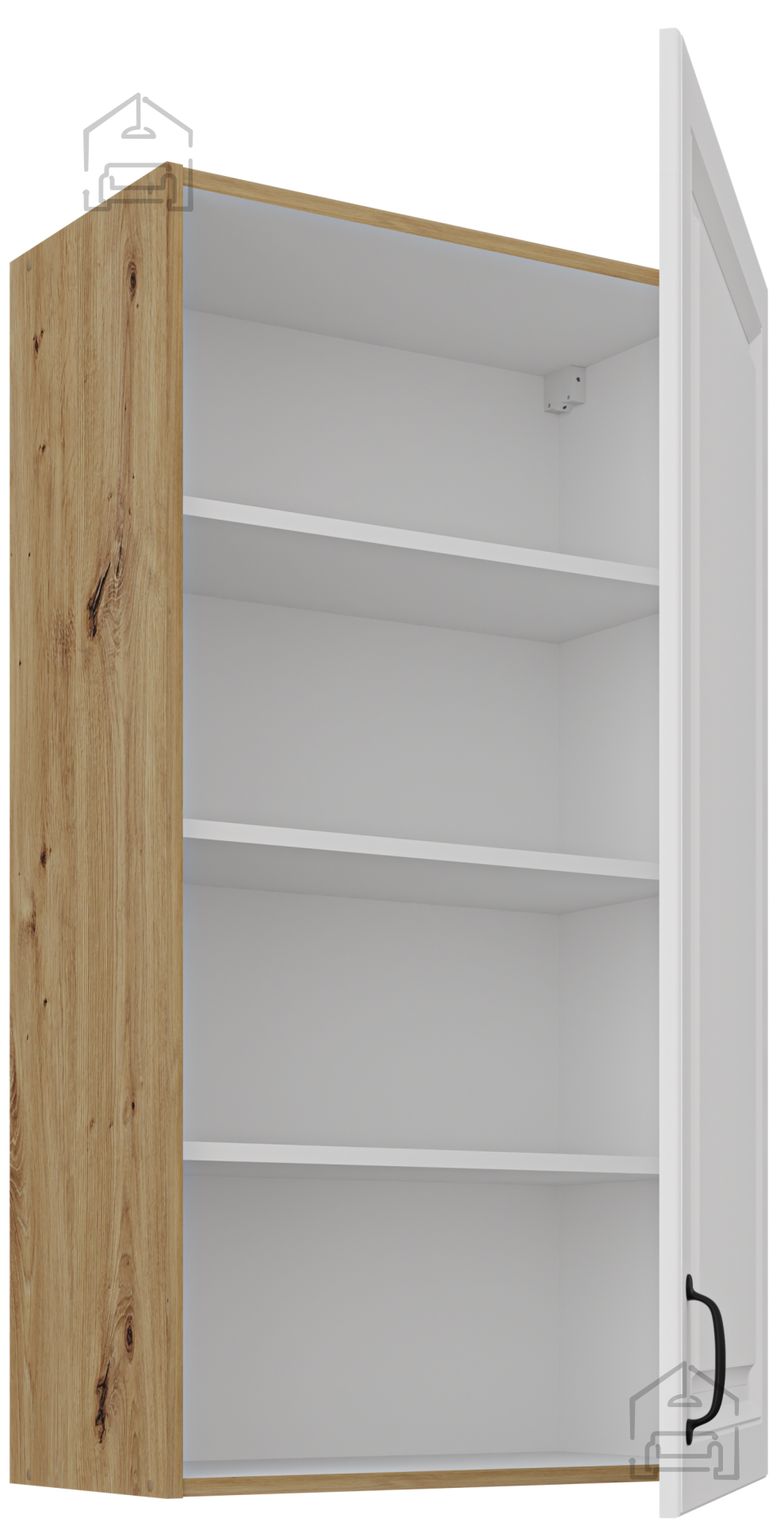 Popolna izbira za vse, ki cenijo eleganco, funkcionalnost in kakovostno izdelavo. Ta zgornja omara prinaša v vašo kuhinjo pridih sodobnega skandinavskega šarma, združenega z naravno toplino lesa. Kombinacija nežne bele barve in prefinjenega dekorja hrasta artisan ustvarja harmonično ravnovesje med svetlobo in teksturo, ki se popolnoma prilega tako modernim kot tudi klasičnim kuhinjskim prostorom. Zaradi premišljeno zasnovanih detajlov in kakovostnih materialov bo omara postala nepogrešljiv del vaše vsakodnevne rutine – lepa na pogled in izjemno praktična v uporabi.