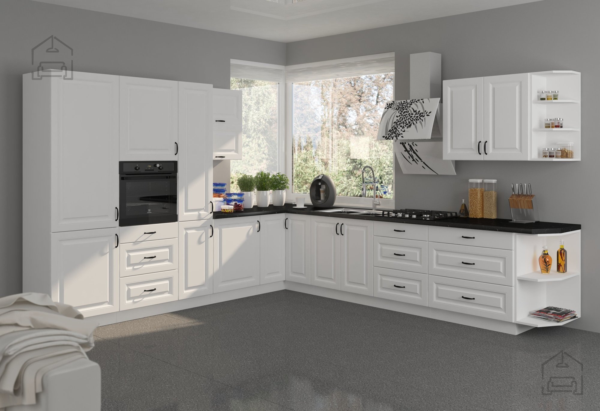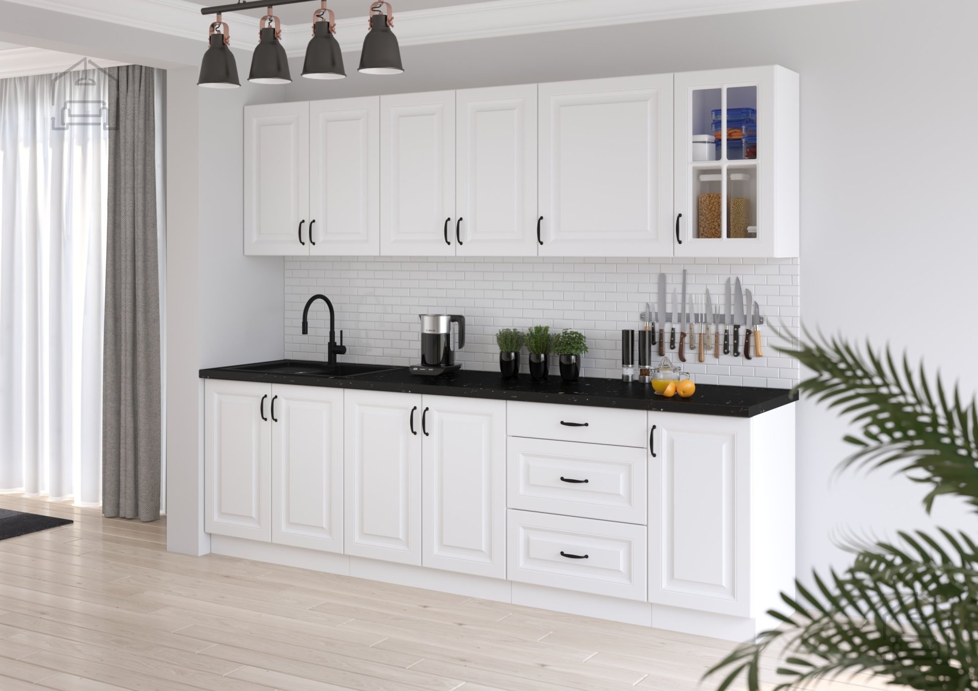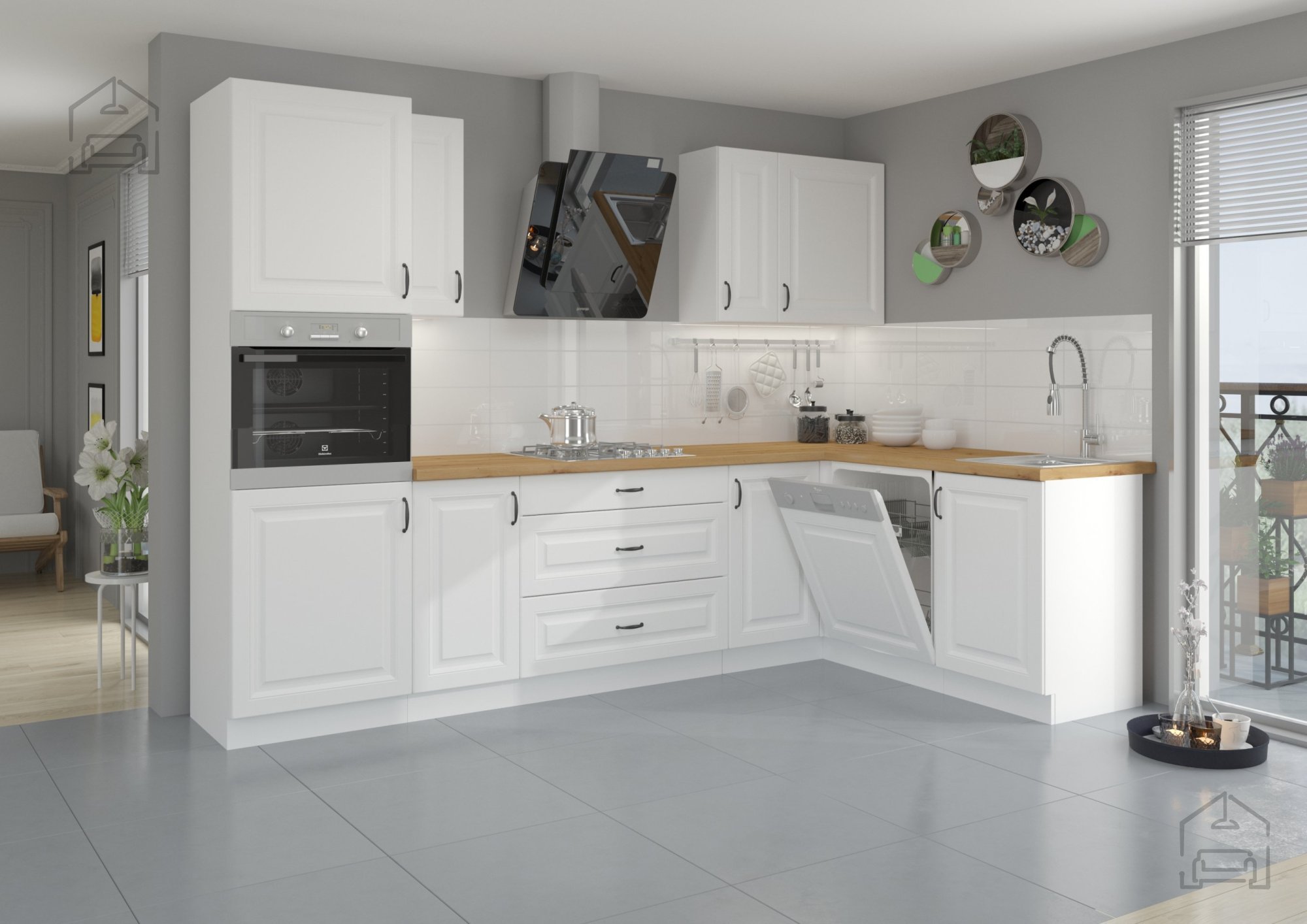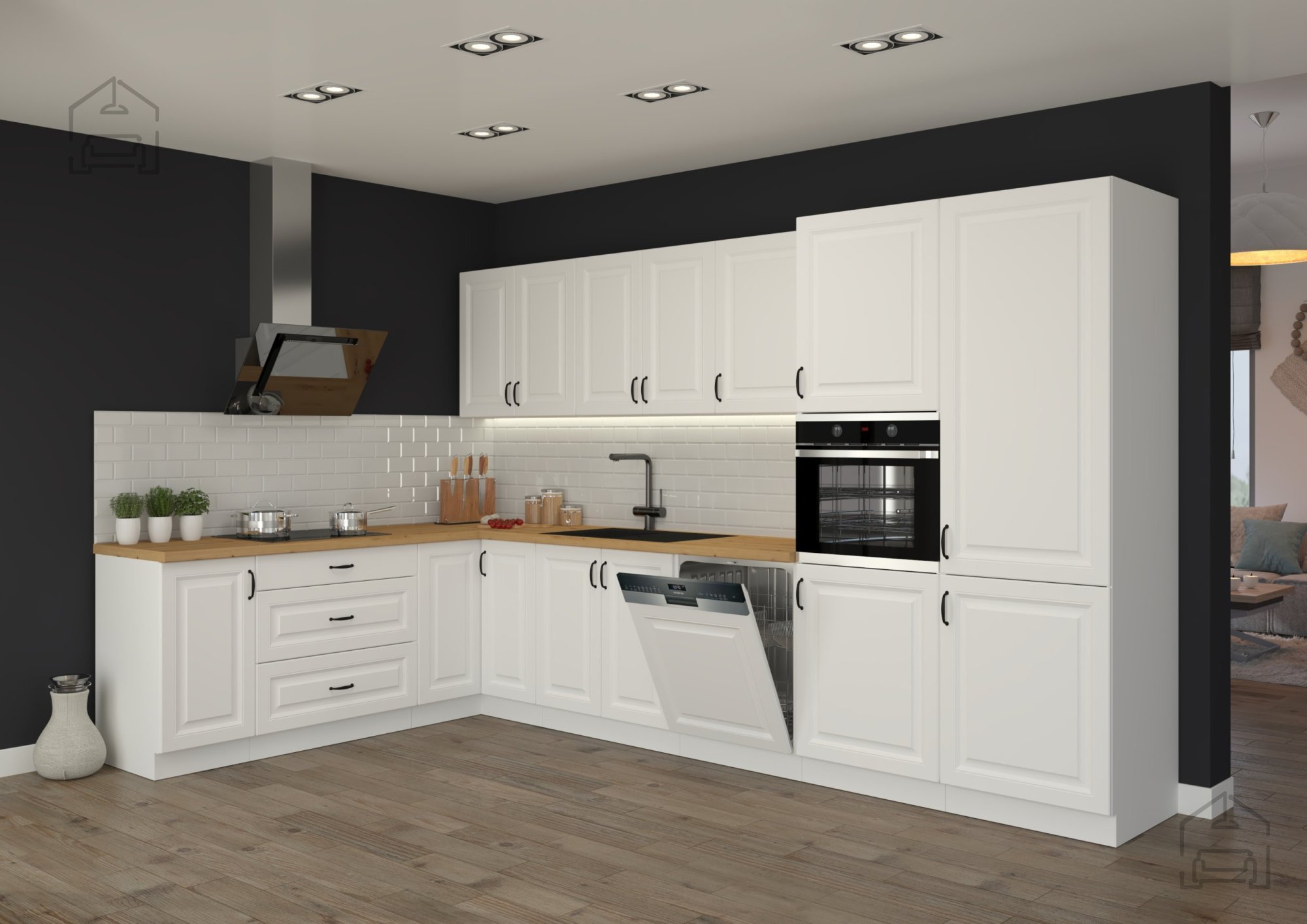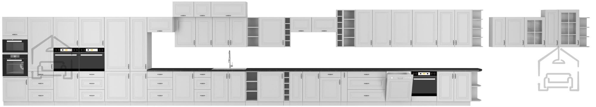 Bela barva nikoli ne gre iz mode – je simbol čistoče, svetlobe in prostornosti. Bela površina korpusa in front daje prostoru svežino in vizualno poveča prostor, kar je še posebej pomembno v manjših kuhinjah ali stanovanjih. V kombinaciji z detajli, kot je kovinski ročaj v elegantnem dizajnu (96 - 2342), omara doda pridih sodobne prefinjenosti. Ta kombinacija ustvarja harmoničen kontrast med toplino lesenih elementov in hladno eleganco kovine.