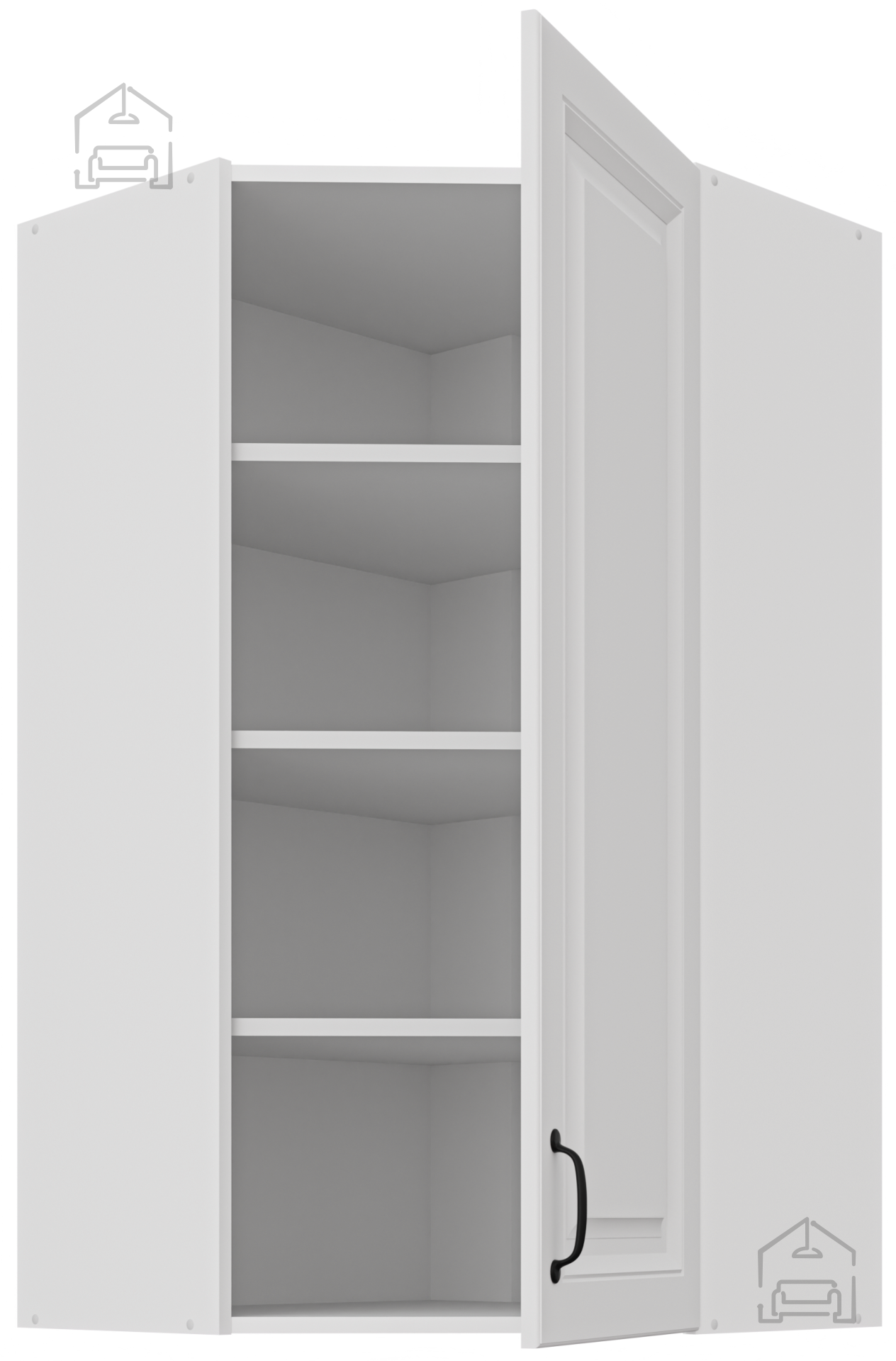 Dimenzije 60x31x107,5 cm omogočajo optimalno razporeditev notranjosti, hkrati pa ohranjajo kompakten videz. Zgornja kotna omara se popolnoma prilega v kot vaše kuhinje pod kotom 45°, kar omogoča enostavno dostopnost in preglednost shranjenih predmetov. Idealna je za shranjevanje posode, začimb, ali drugih kuhinjskih pripomočkov, ki jih želite imeti vedno pri roki.
