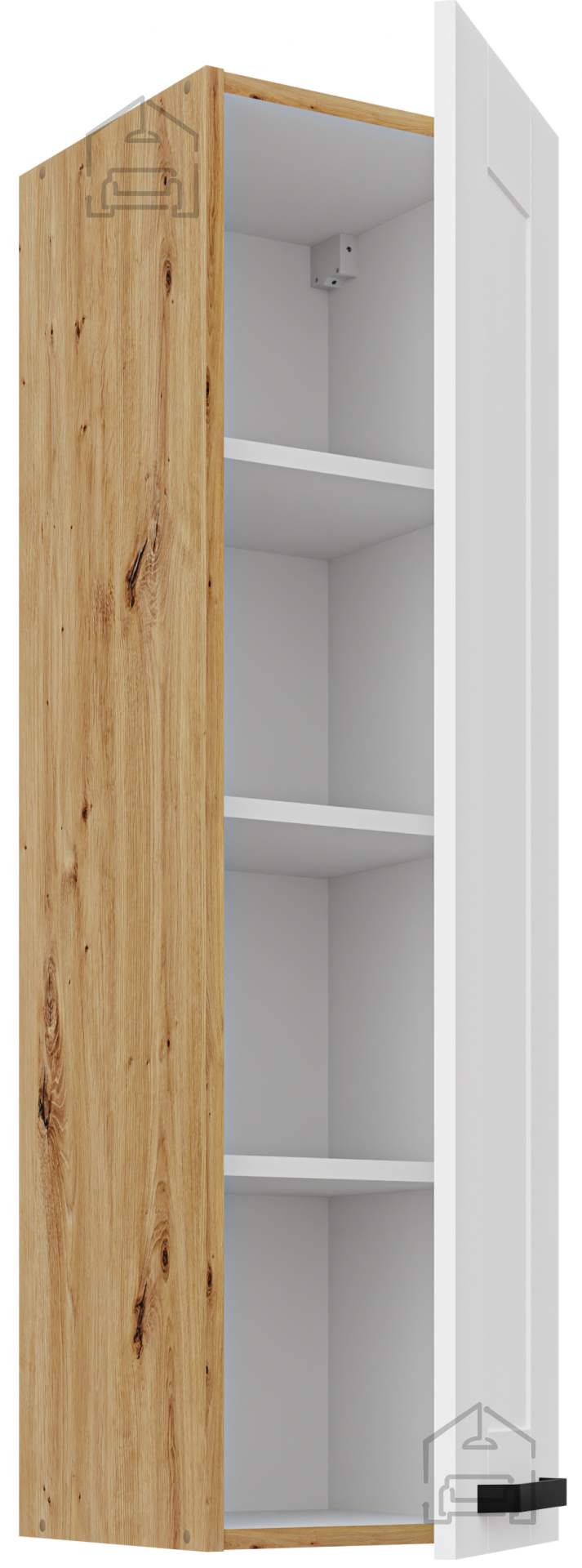 Elegantna in funkcionalna rešitev za sodobno kuhinjo, ki združuje brezčasno lepoto z visoko kakovostjo izdelave – to je popoln dodatek, ki bo vaši kuhinji dodal toplino, red in estetsko dovršenost. Zgornja omara Luna v barvni kombinaciji bela/hrast artisan predstavlja idealno ravnovesje med klasično eleganco in sodobnim minimalizmom. Njene preproste linije in naravni odtenki ustvarjajo prijeten ambient, v katerem se boste vsak dan počutili domače.
