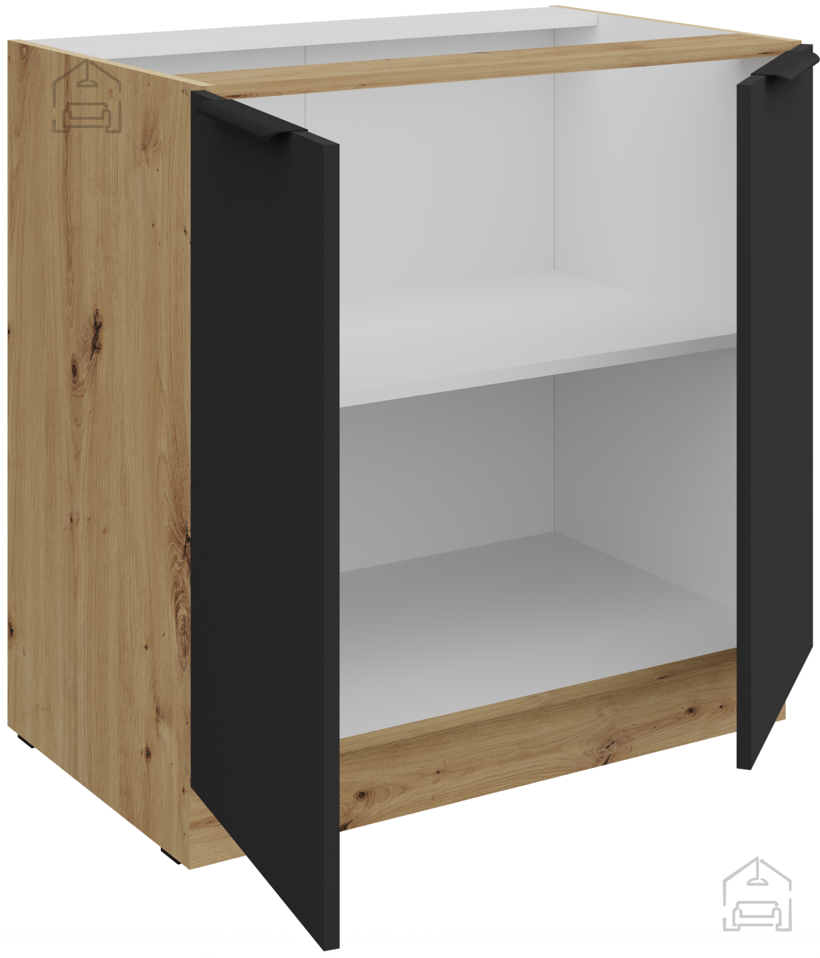 Spodnja omara Aria - črna/artisan hrast - 80 D 2F BB