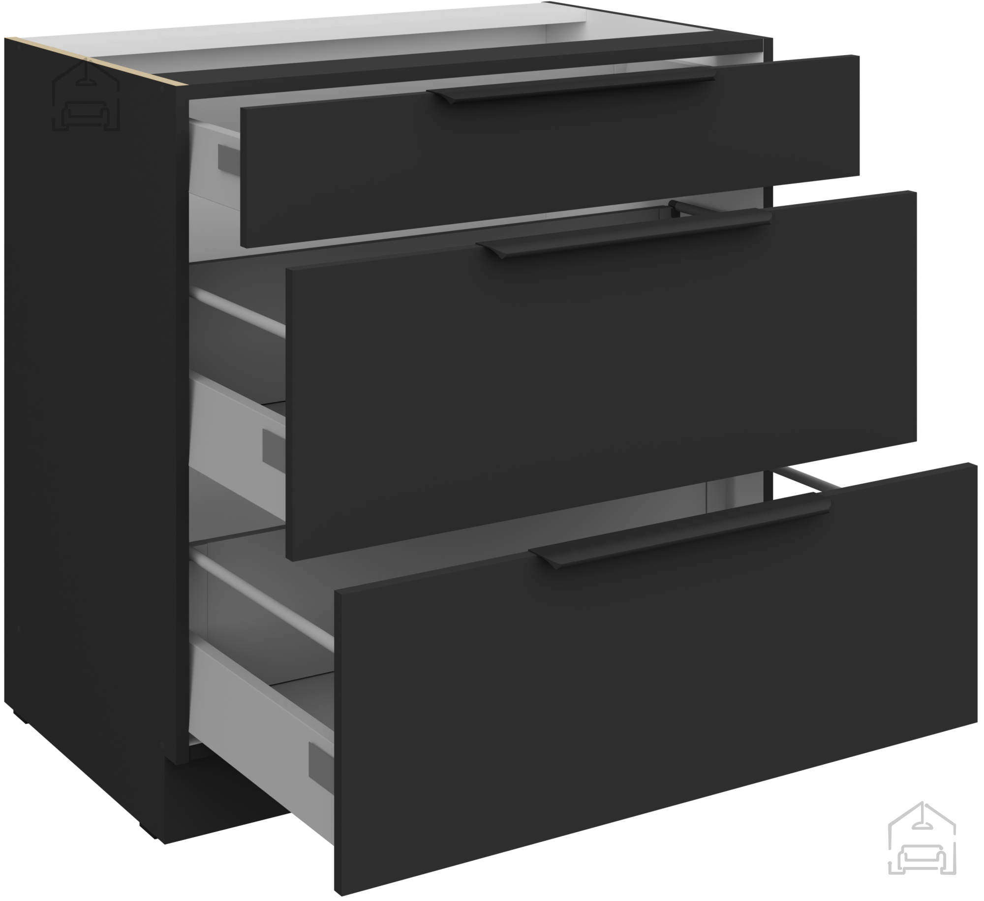 Spodnja omara Aria - črna - 80 D 3S BB