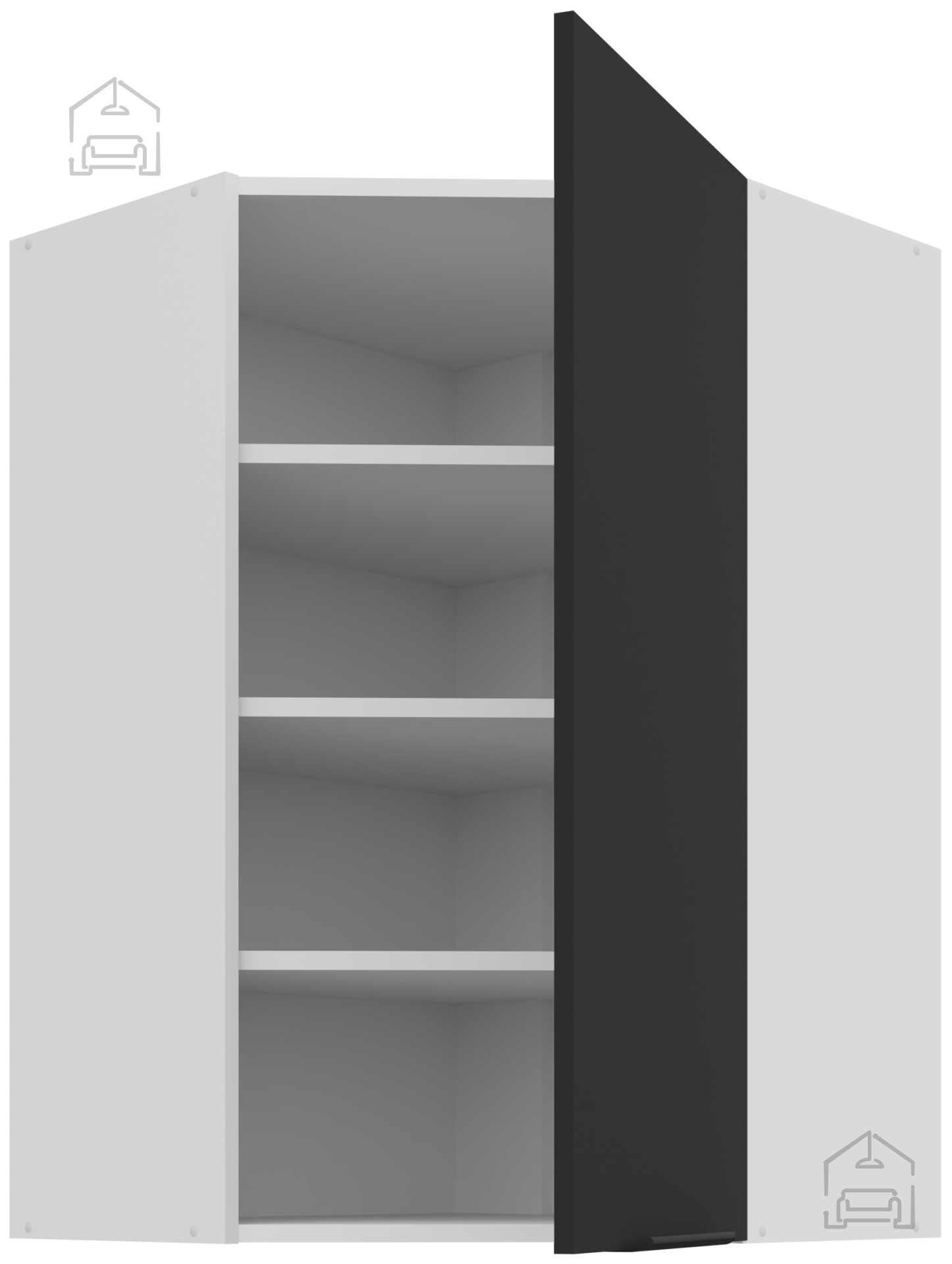 Zgornja kotna omara Aria - črna/bela - 60x60 GN-90 1F (45°)