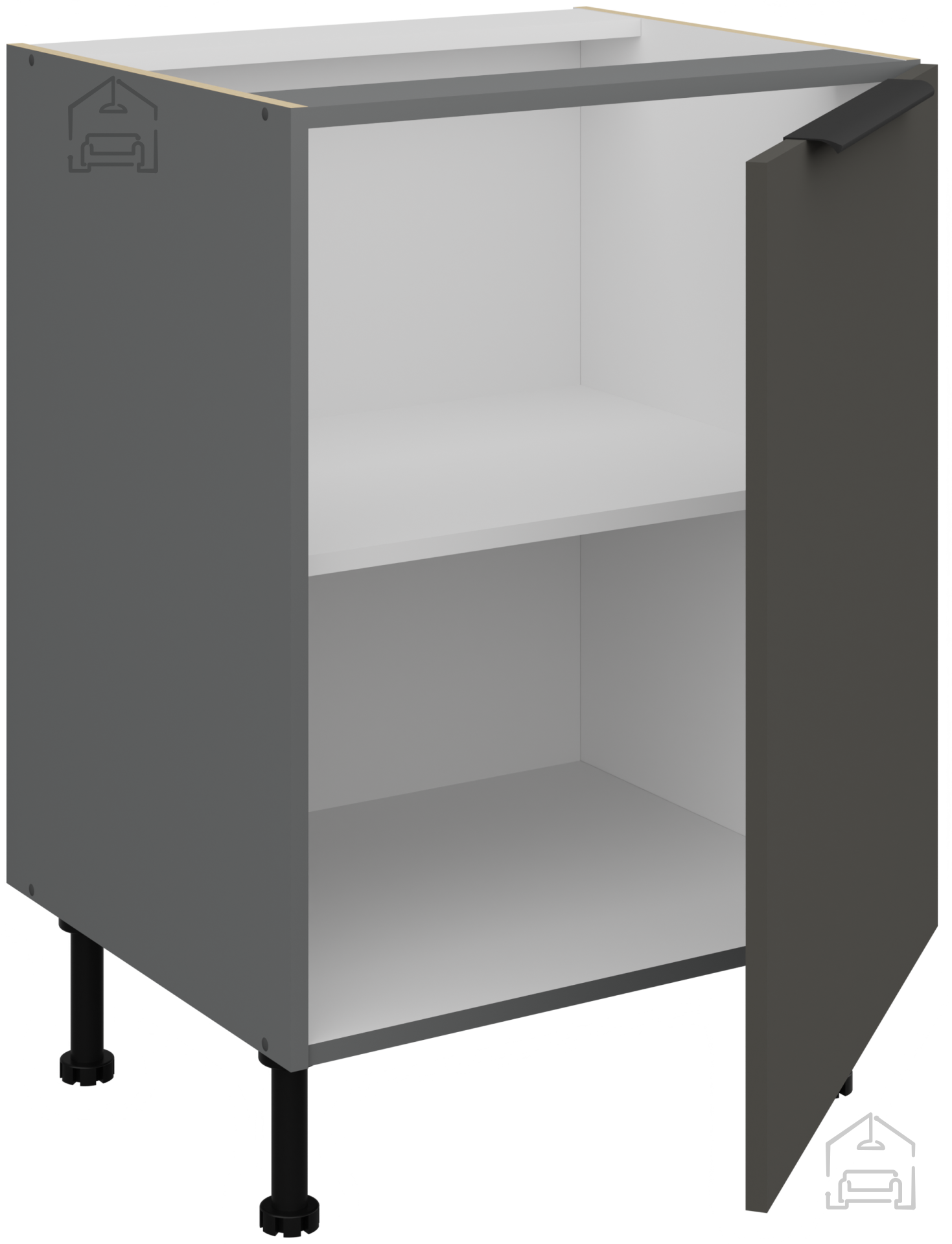 Vsak element kuhinjskega sestava je premišljeno oblikovan, da ponudi največ udobja in uporabnosti. Ohišje in fronte iz laminirane plošče debeline 16 mm zagotavljajo odlično trdnost ter odpornost na vlago in obrabo – kar pomeni, da bo vaša kuhinja dolgo ohranila svoj prvotni videz. Črno-aluminijasti ročaji Edge UA-HEXA z razmikom med 64 mm in 320 mm dodajo moderen kovinski pridih in omogočajo udobno odpiranje vrat ter predalov. Njihova elegantna oblika se popolno ujema s kontrastom med sivimi in antracitnimi površinami ter poudarja sodoben značaj celotnega prostora.
