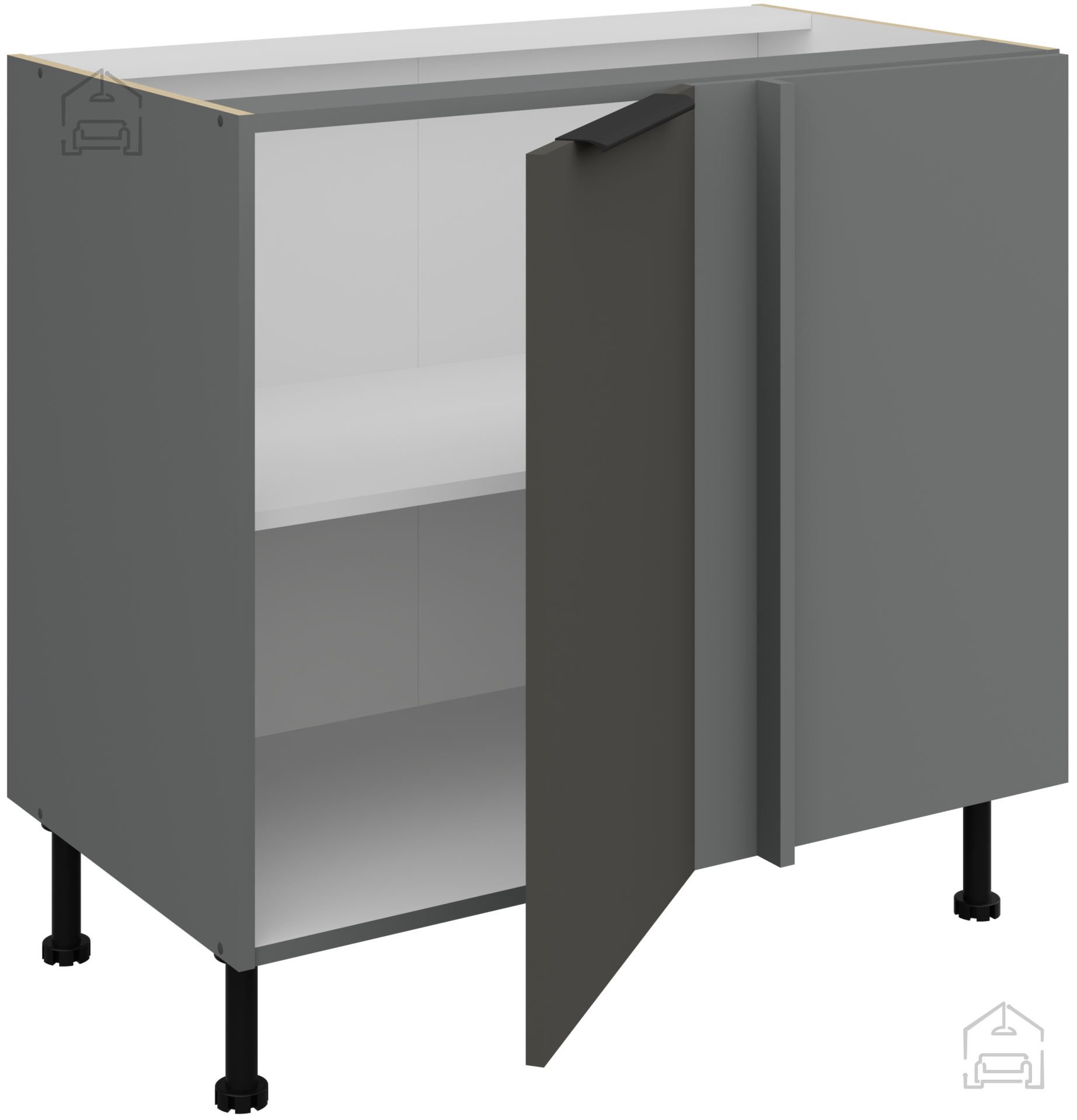 Vsak element kuhinjskega sestava je premišljeno oblikovan, da ponudi največ udobja in uporabnosti. Ohišje in fronte iz laminirane plošče debeline 16 mm zagotavljajo odlično trdnost ter odpornost na vlago in obrabo – kar pomeni, da bo vaša kuhinja dolgo ohranila svoj prvotni videz. Črno-aluminijasti ročaji Edge UA-HEXA z razmikom med 64 mm in 320 mm dodajo moderen kovinski pridih in omogočajo udobno odpiranje vrat ter predalov. Njihova elegantna oblika se popolno ujema s kontrastom med sivimi in antracitnimi površinami ter poudarja sodoben značaj celotnega prostora.