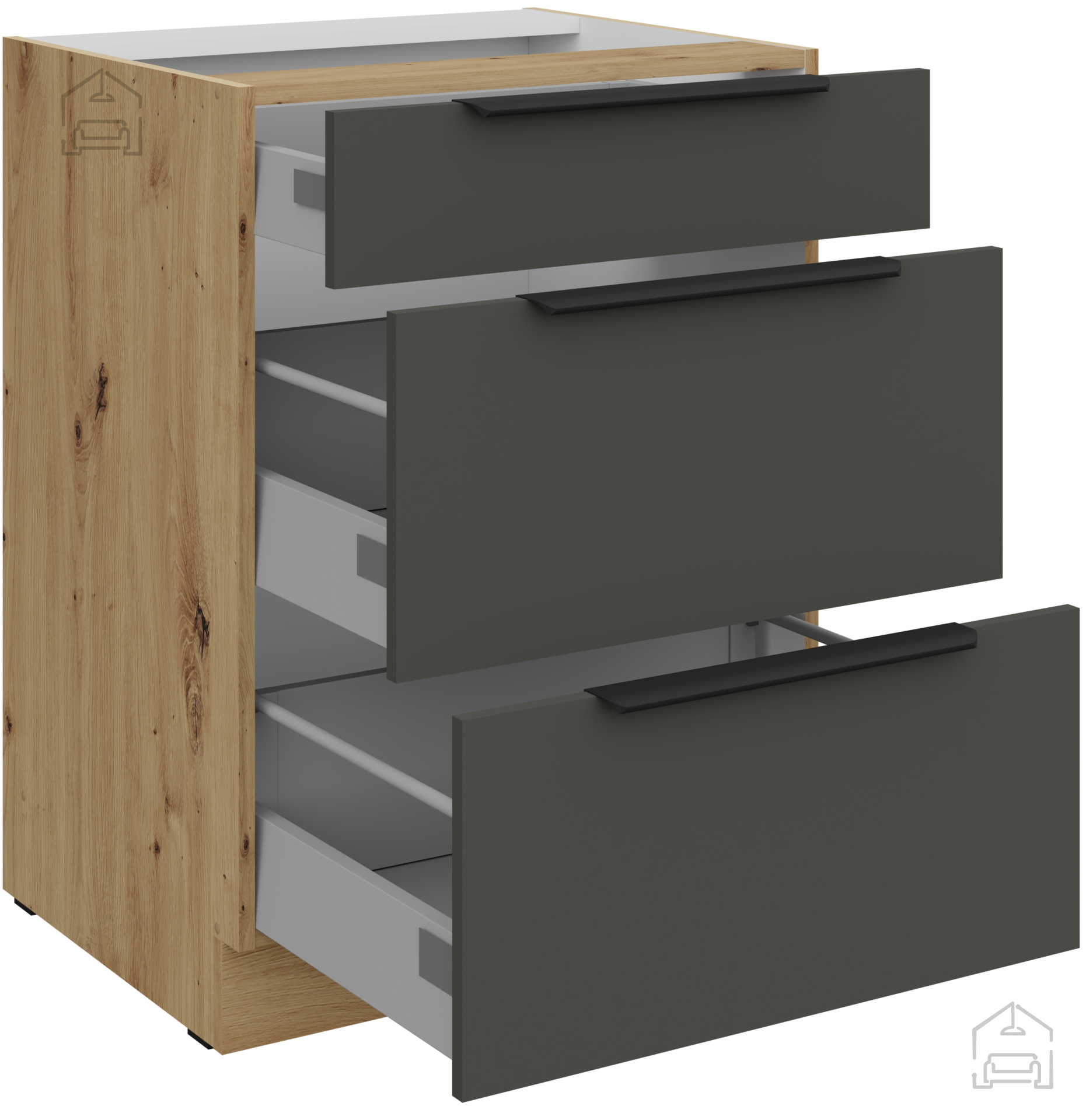 Spodnja omara Aria - siva/artisan hrast - 60 D 3S BB