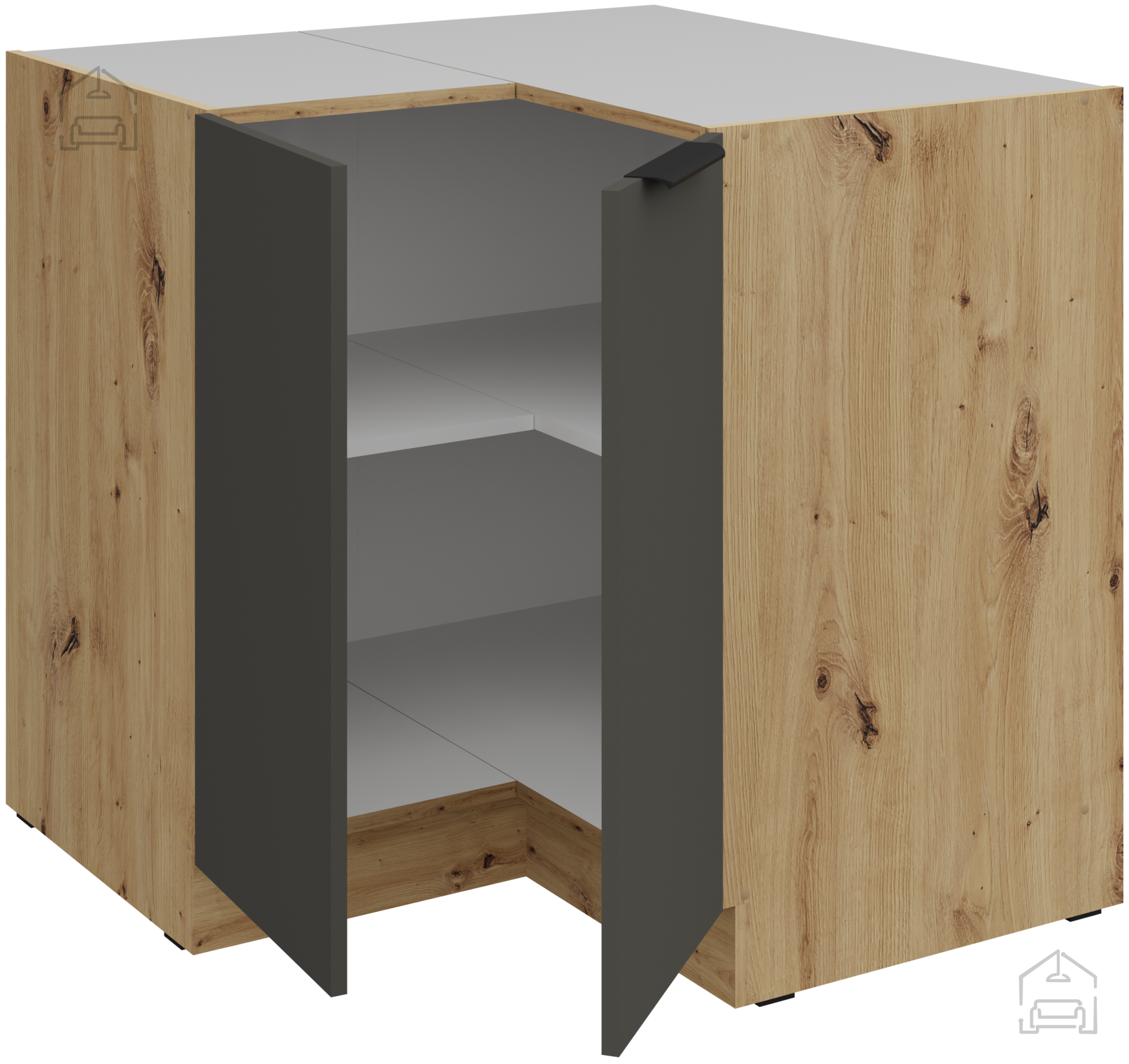 Spodnja kotna omara Aria - siva/artisan hrast - 90x90 DN 2F BB