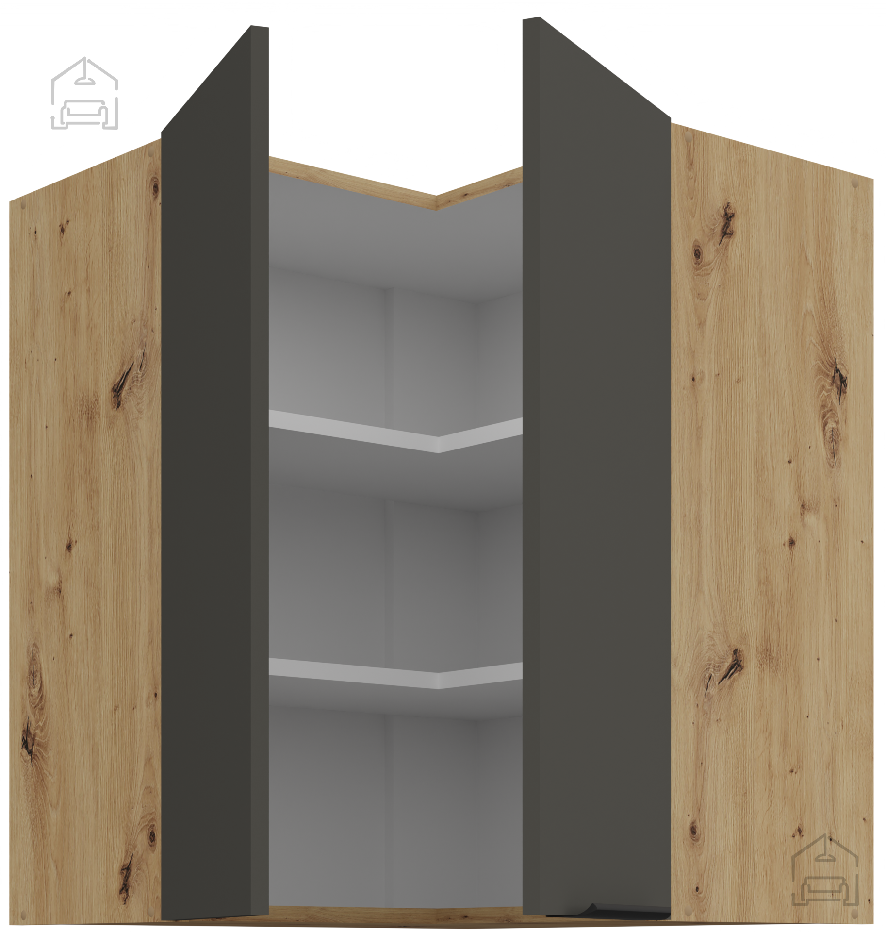 Zgornja kotna omara Aria - siva/artisan hrast - 60x60 GN-72 2F (90°)