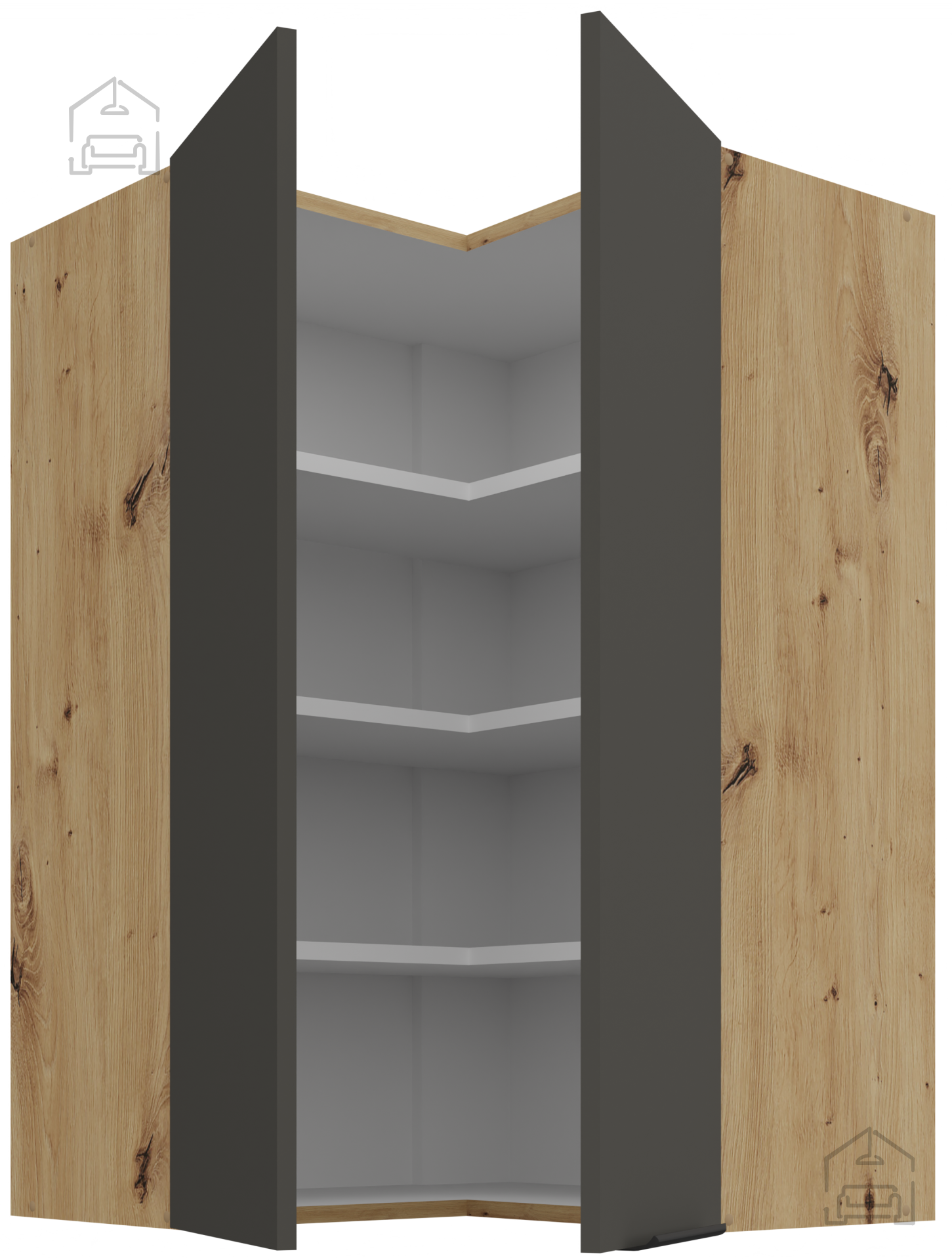 Zgornja kotna omara Aria - siva/artisan hrast - 60x60 GN-90 2F (90°)