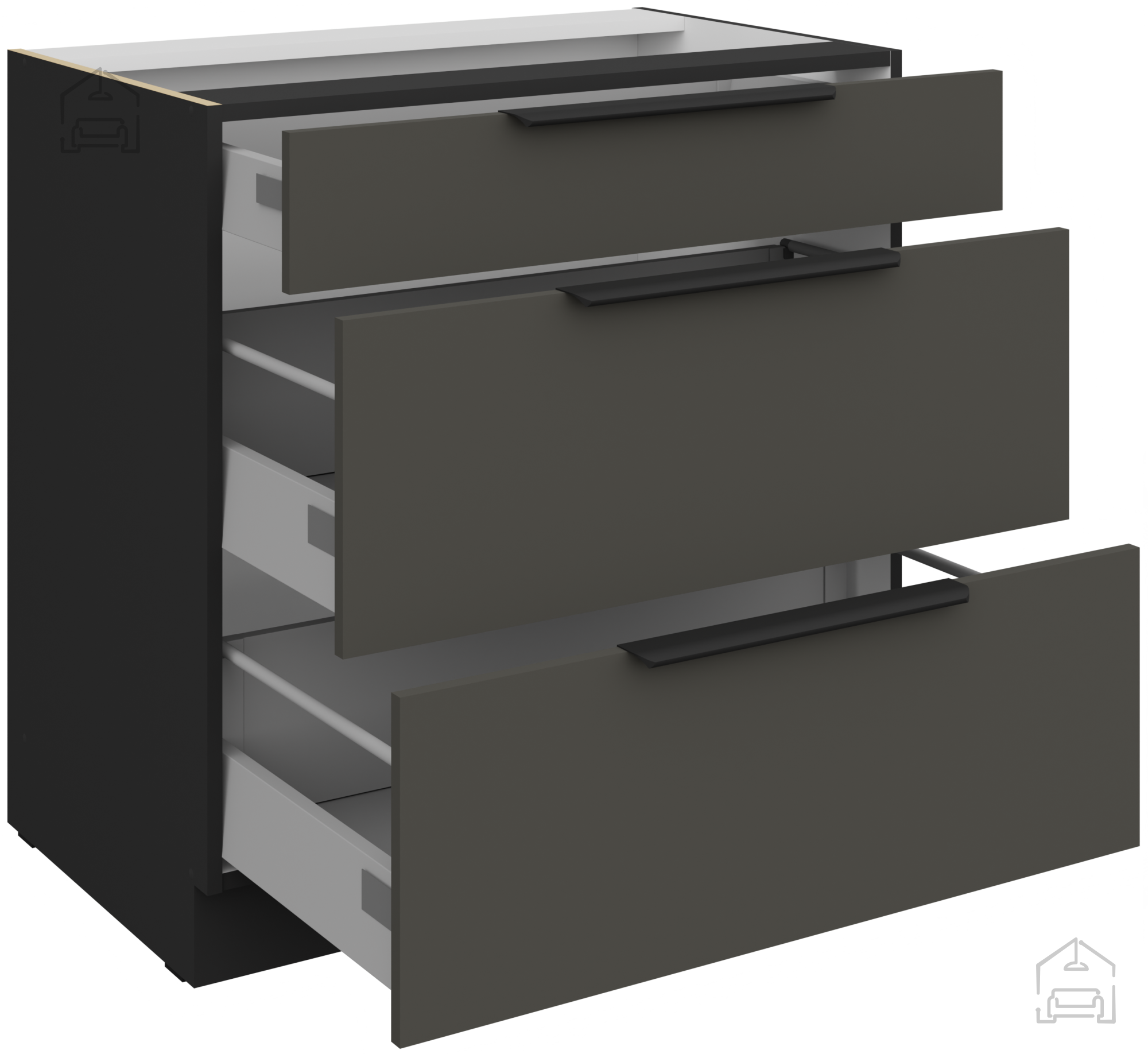 Spodnja omara Aria - siva/črna - 80 D 3S BB