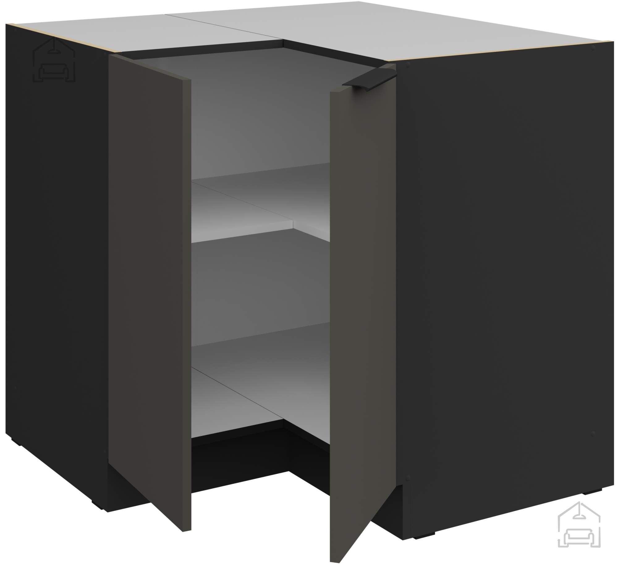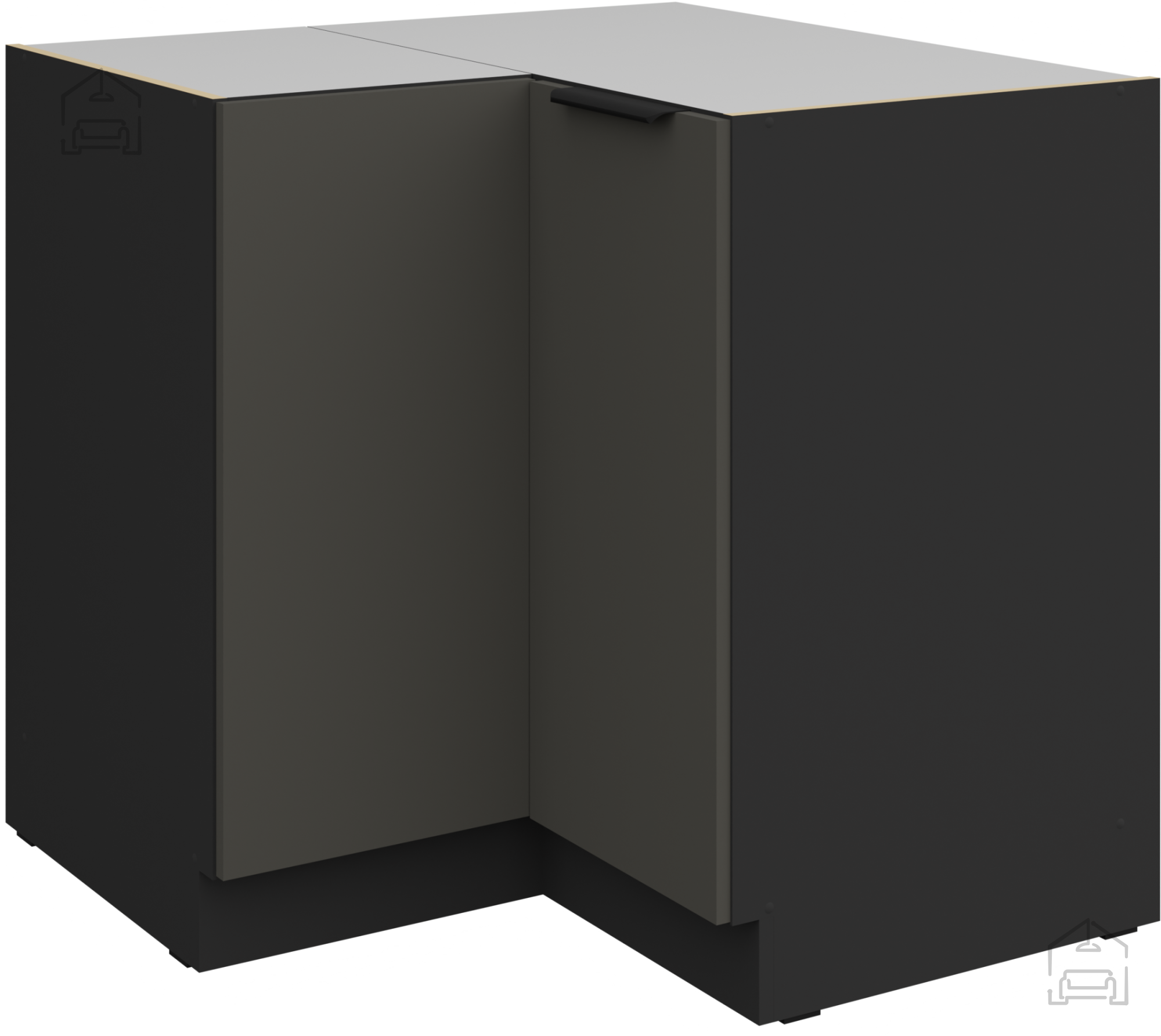 Spodnja kotna omara Aria - siva/črna - 90x90 DN 2F BB