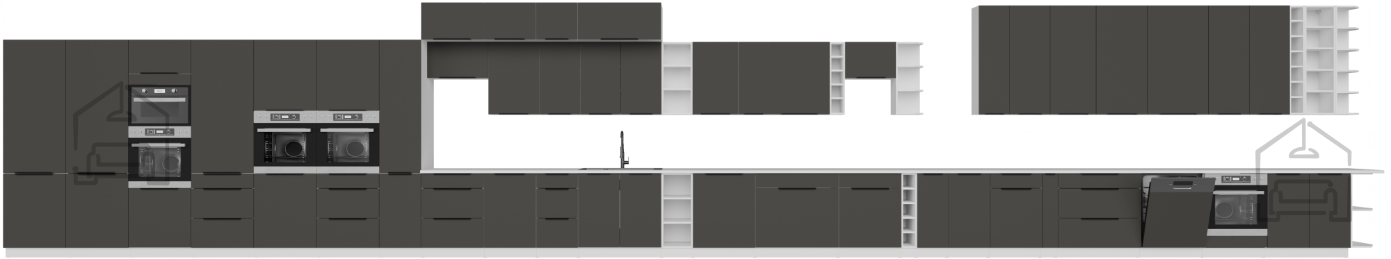 Čiste linije in nevtralna barvna paleta omogočata, da se kuhinja Aria zlahka dopolni z različnimi dekorativnimi dodatki – lesom, kovino ali celo steklom. To omogoča ustvarjanje individualnega ambienta, ki odraža osebni slog lastnika. Siva barva front poudarja sodoben značaj, medtem ko bela osnova poskrbi za svežino in občutek urejenosti.