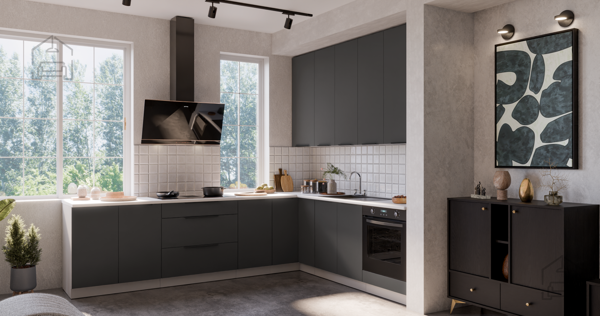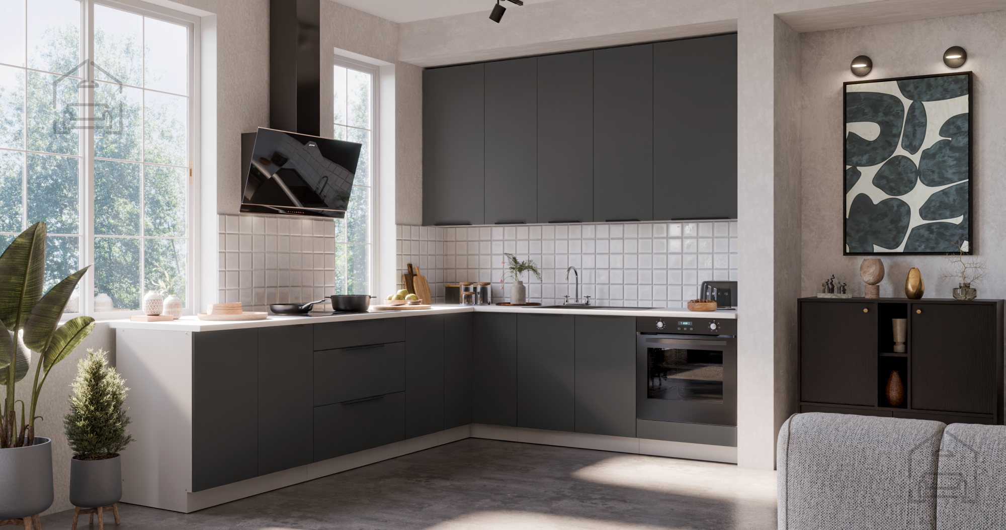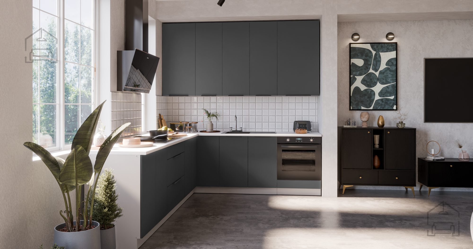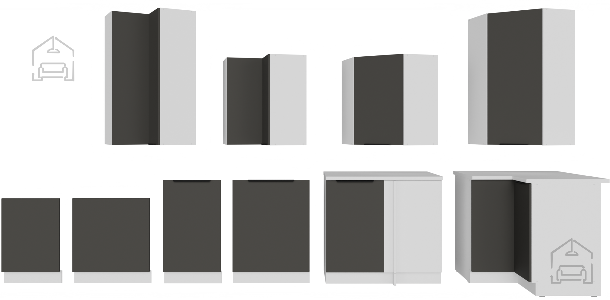 Kuhinjski sestav Aria v sivi in beli barvi predstavlja izjemno ravnovesje med praktičnostjo in sodobnim oblikovanjem. Zasnovan je za uporabnike, ki si želijo urejen, svetel in vizualno uravnotežen prostor, v katerem bo priprava hrane postala prijetno doživetje. Kombinacija nevtralnih tonov sive in bele omogoča enostavno vključitev v različne stile notranje opreme – od minimalističnih do skandinavskih ali klasično elegantnih kuhinj. Površine so izdelane iz kakovostne laminirane plošče debeline 16 mm, kar zagotavlja dolgo življenjsko dobo in enostavno vzdrževanje.