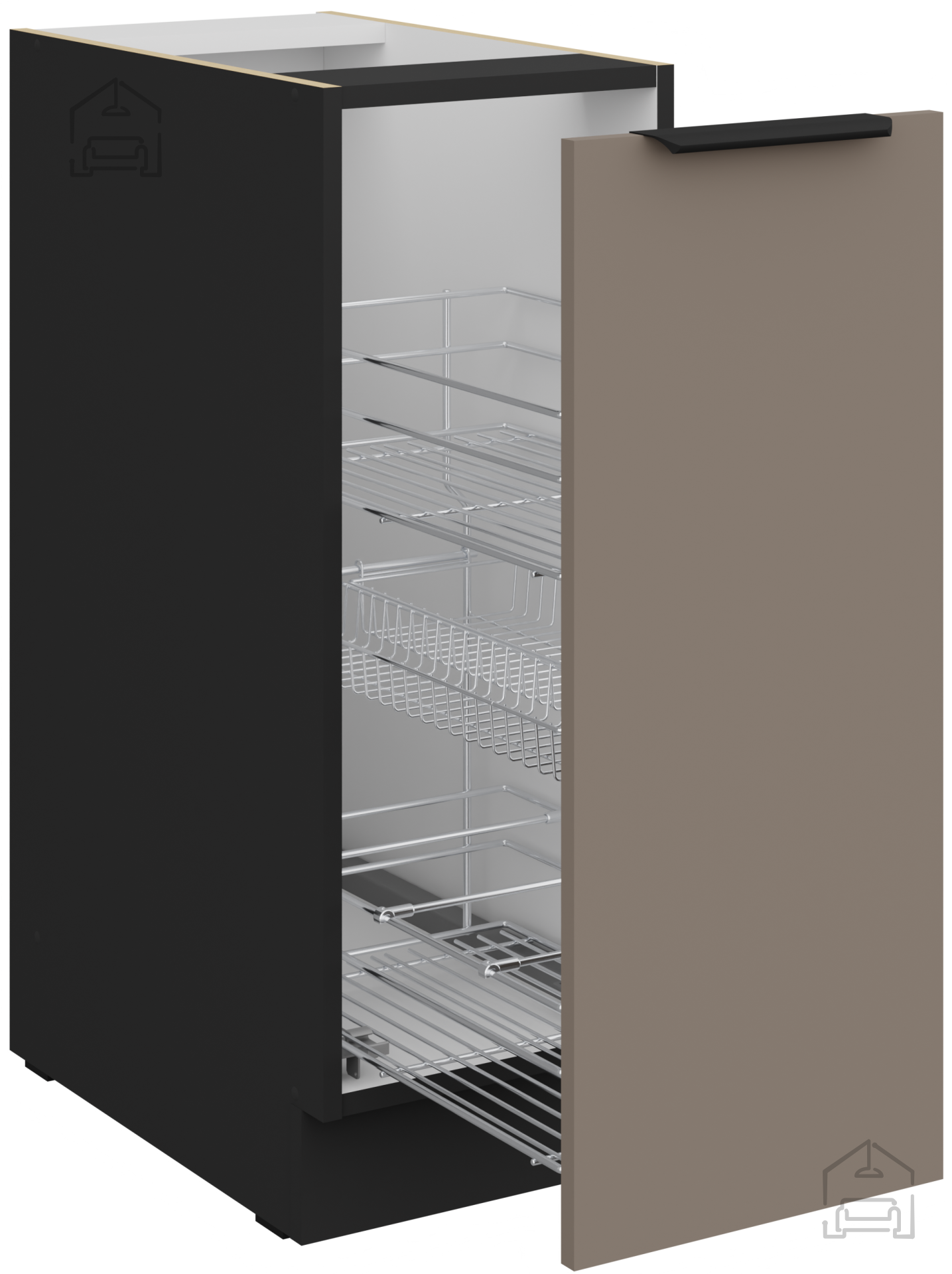 Kuhinjski sestav Aria v barvni kombinaciji sandgrau/črn predstavlja sodoben pristop k oblikovanju kuhinjskega prostora, kjer se estetika in funkcionalnost dopolnjujeta v popolno celoto. Izdelan je v priznani poljski tovarni Stolarz-Lempert, ki je znana po kakovostni obdelavi materialov in natančni izdelavi pohištvenih elementov. Zaradi svoje premišljene zasnove in trpežnih materialov je ta sestav idealna izbira za vsak dom, ki ceni trajnost, praktičnost in eleganco.