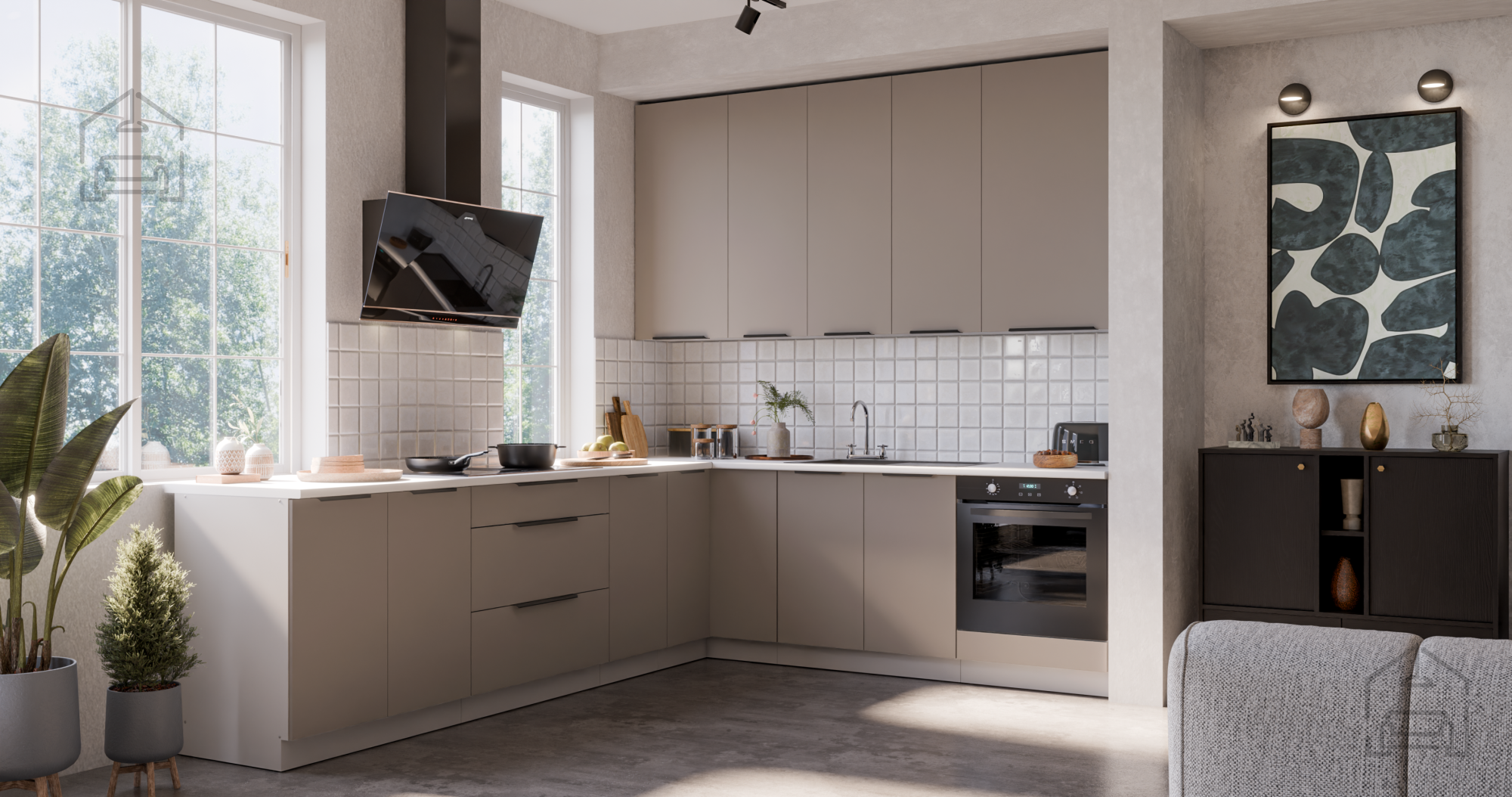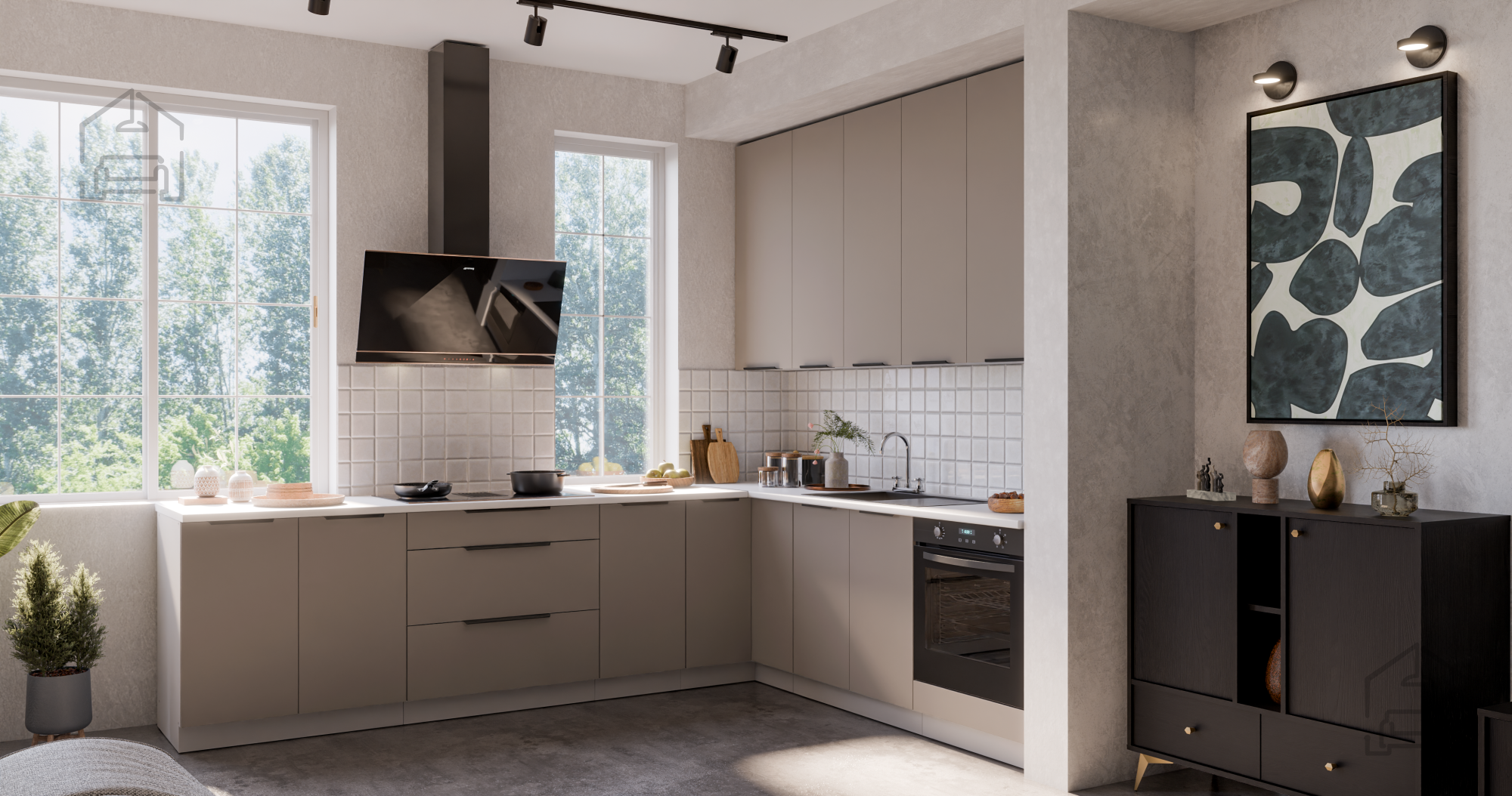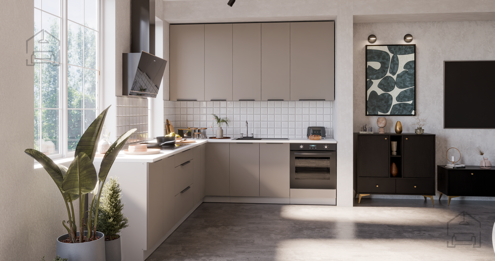 Kuhinjski sestav Aria omogoča raznolike oblikovne kombinacije. Zaradi nevtralne barvne sheme ga je mogoče dopolniti z lesenimi, kovinskimi ali steklenimi dodatki. V kombinaciji z naravnimi materiali, kot so svetel les ali kamnite površine, ustvari prijetno domače okolje. V modernih interierjih se odlično ujema z matiranimi površinami in črnimi detajli. Zaradi svoje univerzalne barvne kombinacije je primeren za klasične in sodobne kuhinjske prostore.