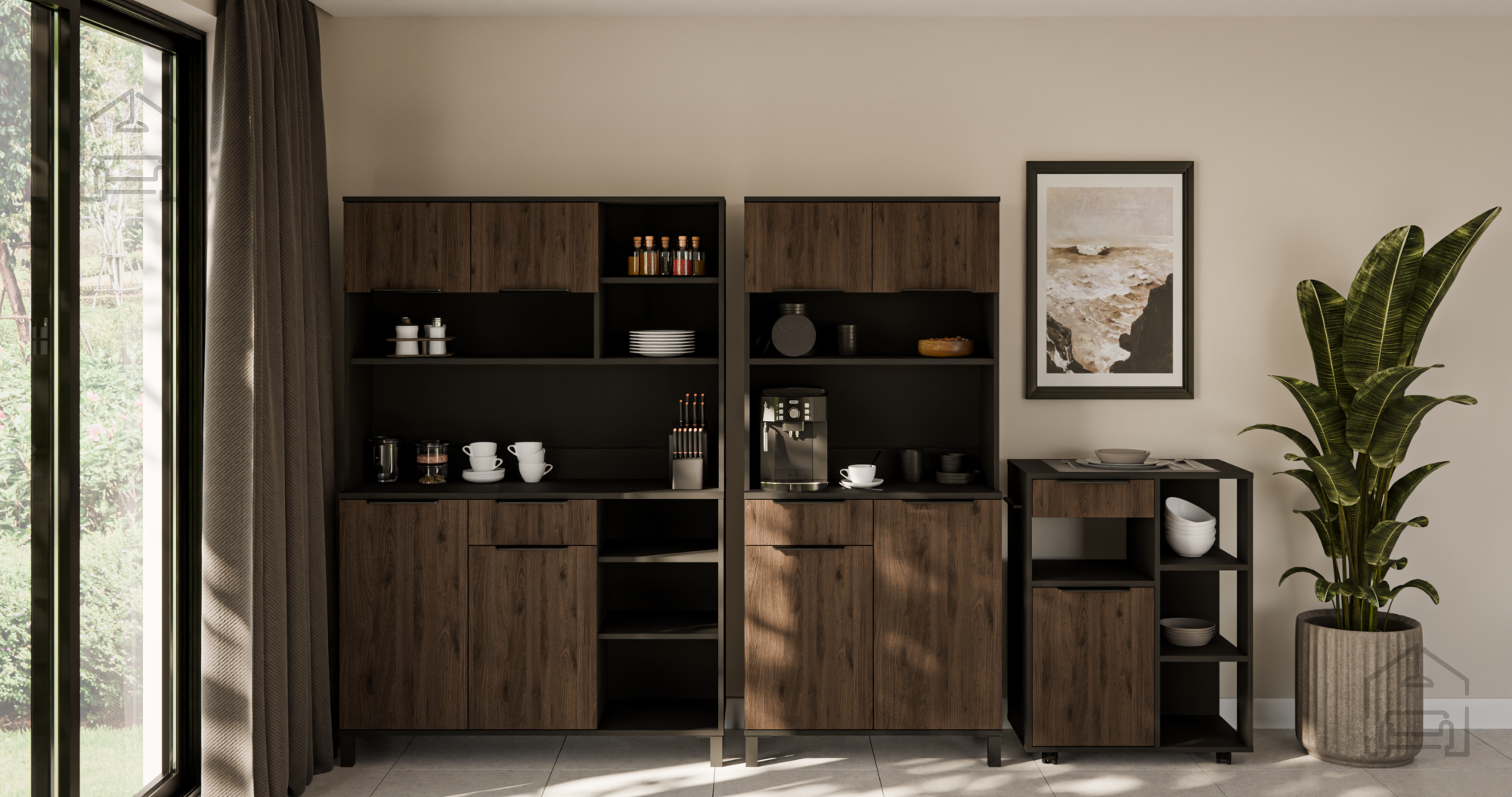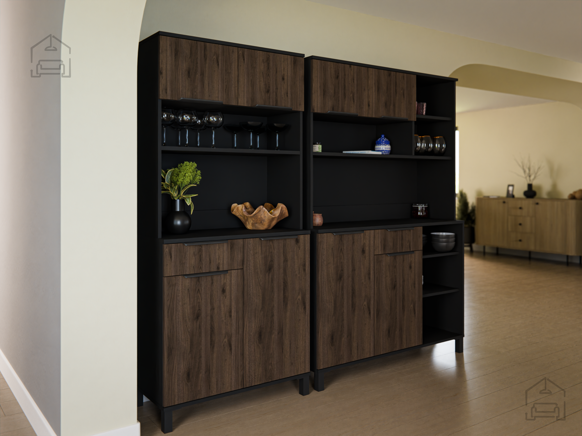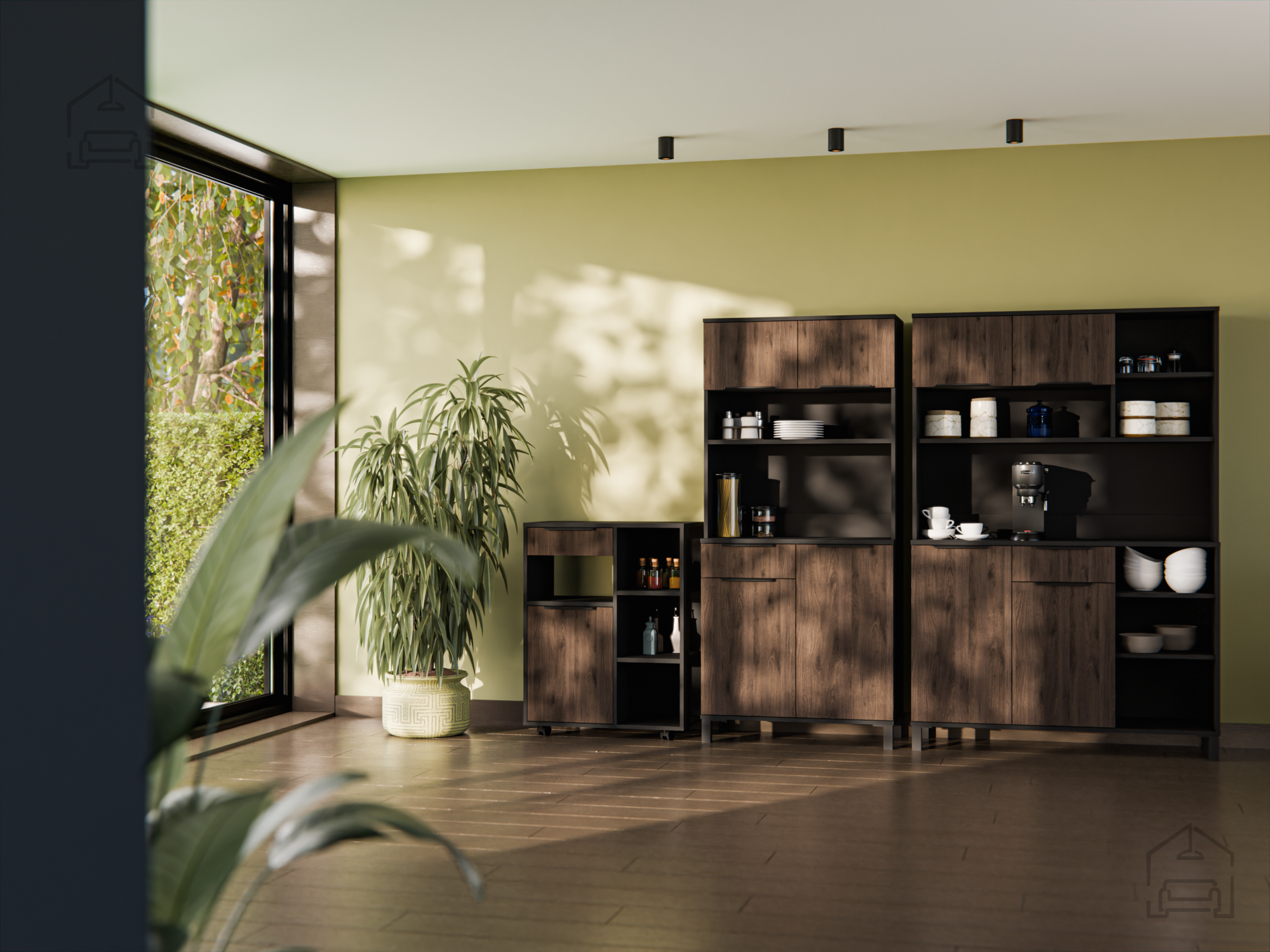 Kuhinjski sestav Monza je sodoben in funkcionalen komplet, izdelan v tovarni Stolarz-Lempert na Poljskem. Kombinacija trpežne laminirane plošče debeline 16 mm in elegantne barvne izvedbe oreh okapi/črna daje kuhinji prefinjen videz, ki se lepo ujema z različnimi stili notranje opreme – od klasičnih do modernih. Sestav je zasnovan tako, da ponuja učinkovito razporeditev elementov in omogoča praktično uporabo prostora.
