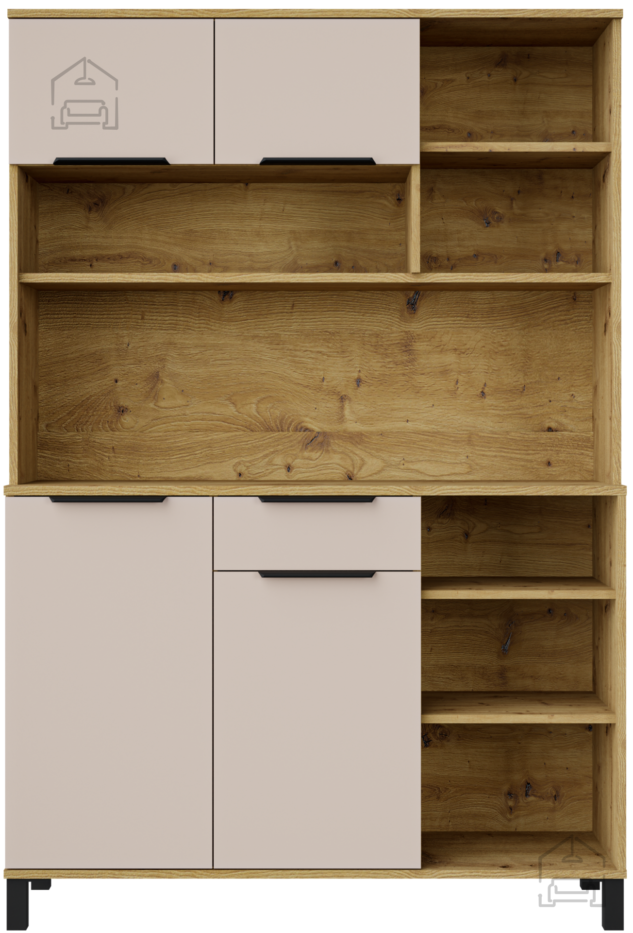 Kuhinjski sestav Solea je eleganten in funkcionalen kos pohištva, zasnovan za sodobne kuhinje, kjer se prepletata estetika in praktičnost. Kombinacija barv kašmir in artisan hrast ustvarja prijeten, topel videz, ki poudari naravne tone lesa in se lepo ujema z različnimi notranjimi slogi. Izdelan je v priznani tovarni Stolarz-Lempert na Poljskem, kar zagotavlja kakovostno izdelavo in natančno pozornost do detajlov. Ta kredenca je primeren za tiste, ki cenijo urejen prostor in iščejo pohištvo, ki združuje lepoto in uporabnost v enem kosu.