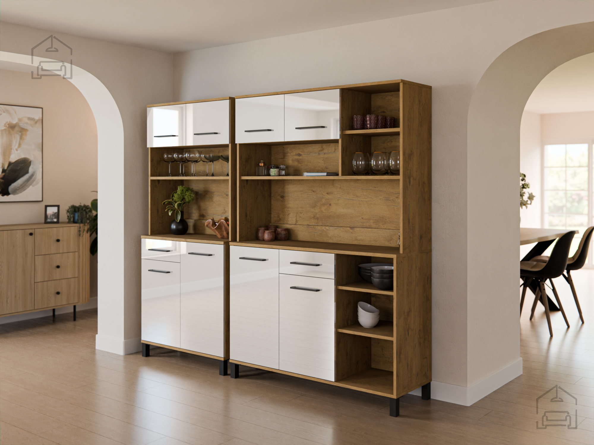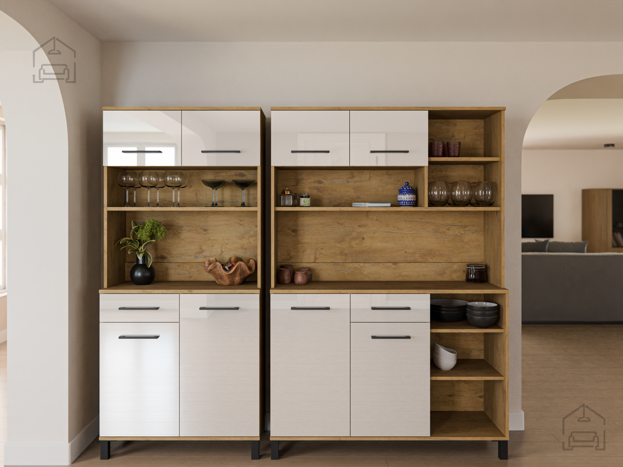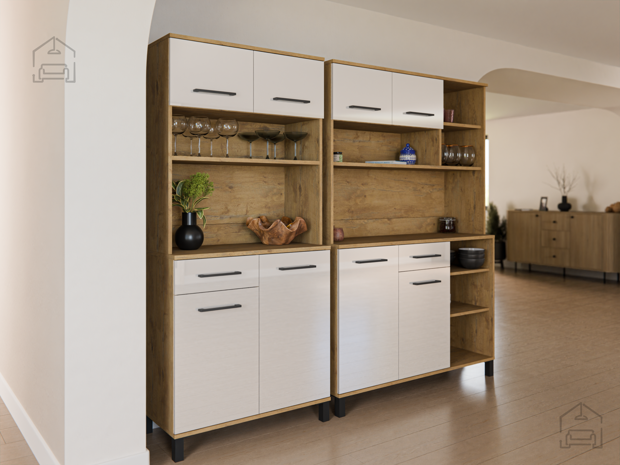 Videz kuhinjskega sestava Vigo je zasnovan tako, da se zlahka prilagodi različnim notranjim slogom – od minimalističnega do klasičnega. Bela sijajna površina vizualno poveča prostor in odseva svetlobo, medtem ko detajli v barvi hrasta lancelot ustvarjajo občutek topline in domačnosti. Takšna kontrastna kombinacija barv omogoča preprosto ujemanje z drugimi kuhinjskimi elementi, talnimi oblogami ali dekorativnimi dodatki.