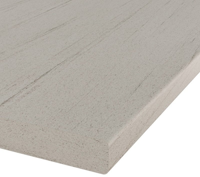 Površina v odtenku ipanema bela 6265 prinaša občutek čistosti in svetlobe v vsak prostor. Bela barva delovne plošče omogoča enostavno kombiniranje z različnimi barvami front, ročajev in talnih oblog. Hkrati ima laminirana površina rahlo teksturo, ki daje videz naravnega materiala in prijeten občutek na dotik. Takšna obdelava ne zahteva posebnega vzdrževanja – dovolj je redno brisanje z vlažno krpo in blagim čistilom, da pult ohrani svoj prvotni videz še vrsto let.