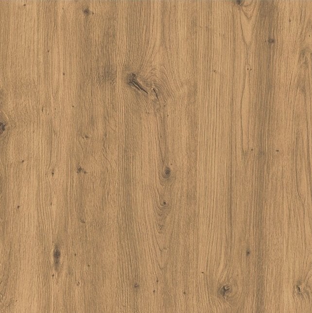 Barva hrast artisan je izjemno priljubljena zaradi svoje tople, naravne in rahlo rustikalne strukture. Ta dekor se lepo ujema s svetlimi in temnimi frontami kuhinjskih omaric, pa tudi z modernimi kovinskimi ali črnimi dodatki. Površina ima subtilen mat zaključek, ki deluje prijetno na otip in dodaja prostoru občutek domačnosti. Takšen pult lahko služi kot osrednji element kuhinje, ki povezuje različne materiale in barvne tone v harmonično celoto.