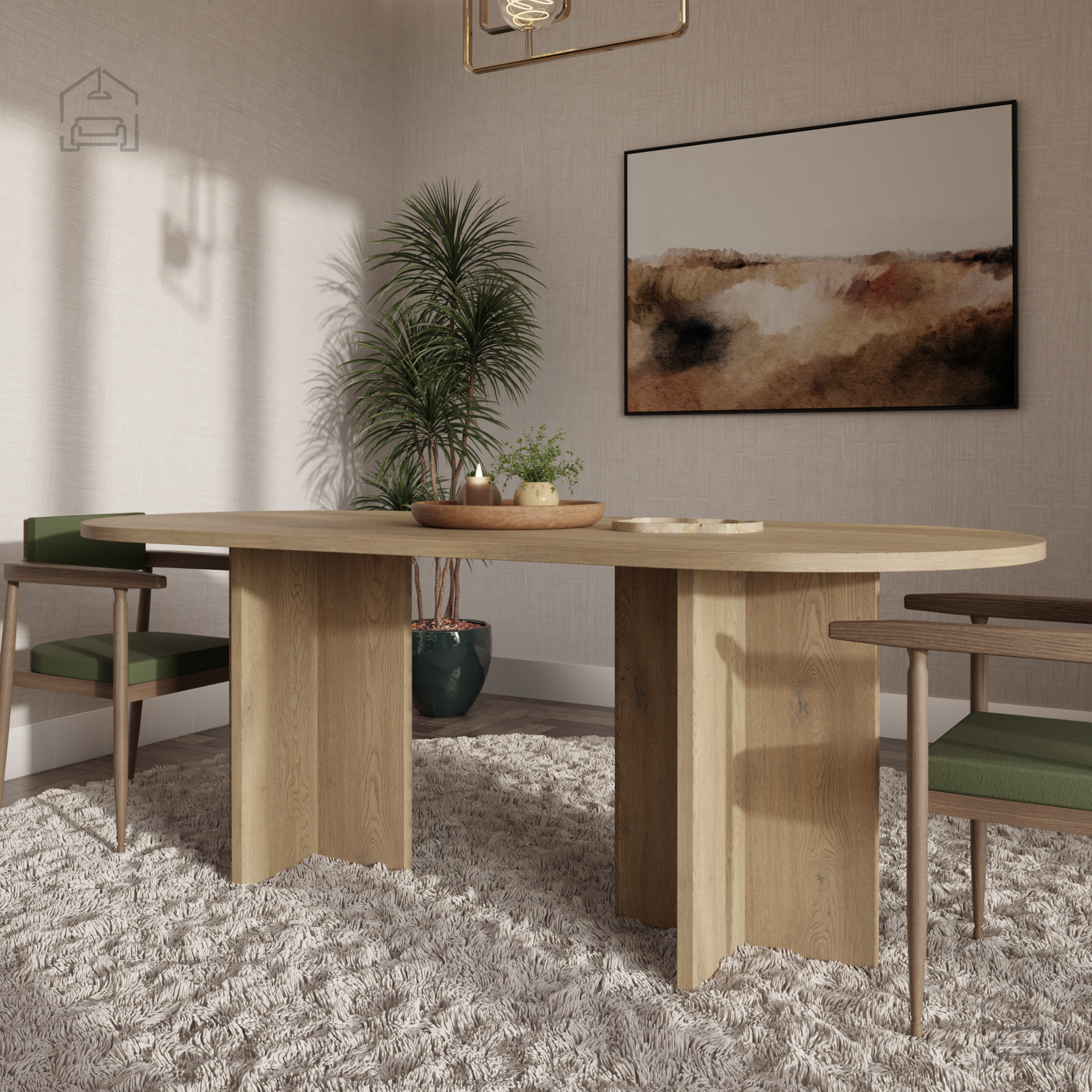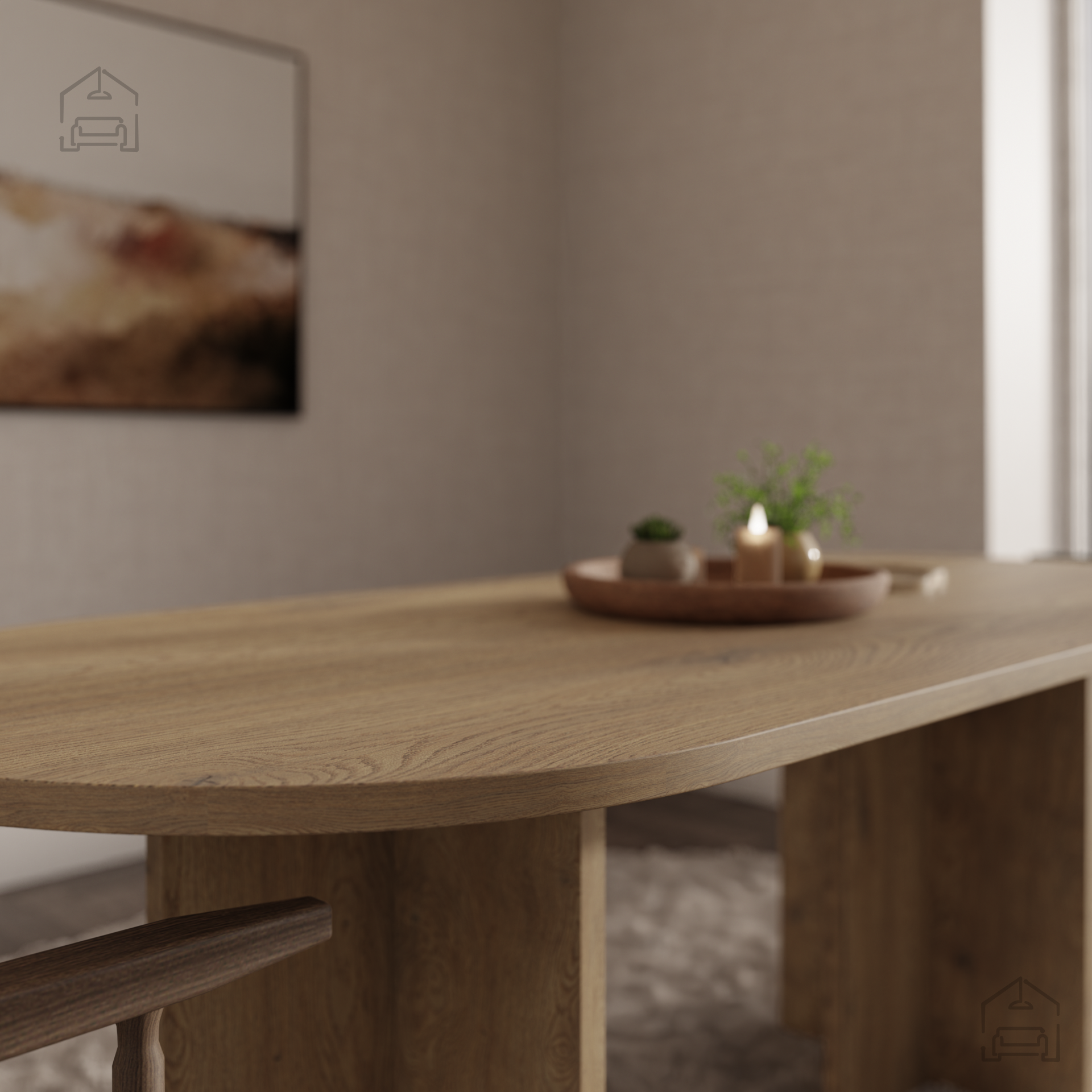Odtenek cremonskega hrasta je eden najbolj priljubljenih v sodobnem pohištvu. Ponuja toplino naravnega lesa, hkrati pa ohranja sodoben videz z diskretnimi vzorci letnic. Takšna barva se lepo ujema z nevtralnimi stenami, kovinskimi dodatki ali tekstilom v sivih, bež in zelenih tonih. Miza Loen tako postane osrednji element prostora, ne da bi preglasila druge kose pohištva.