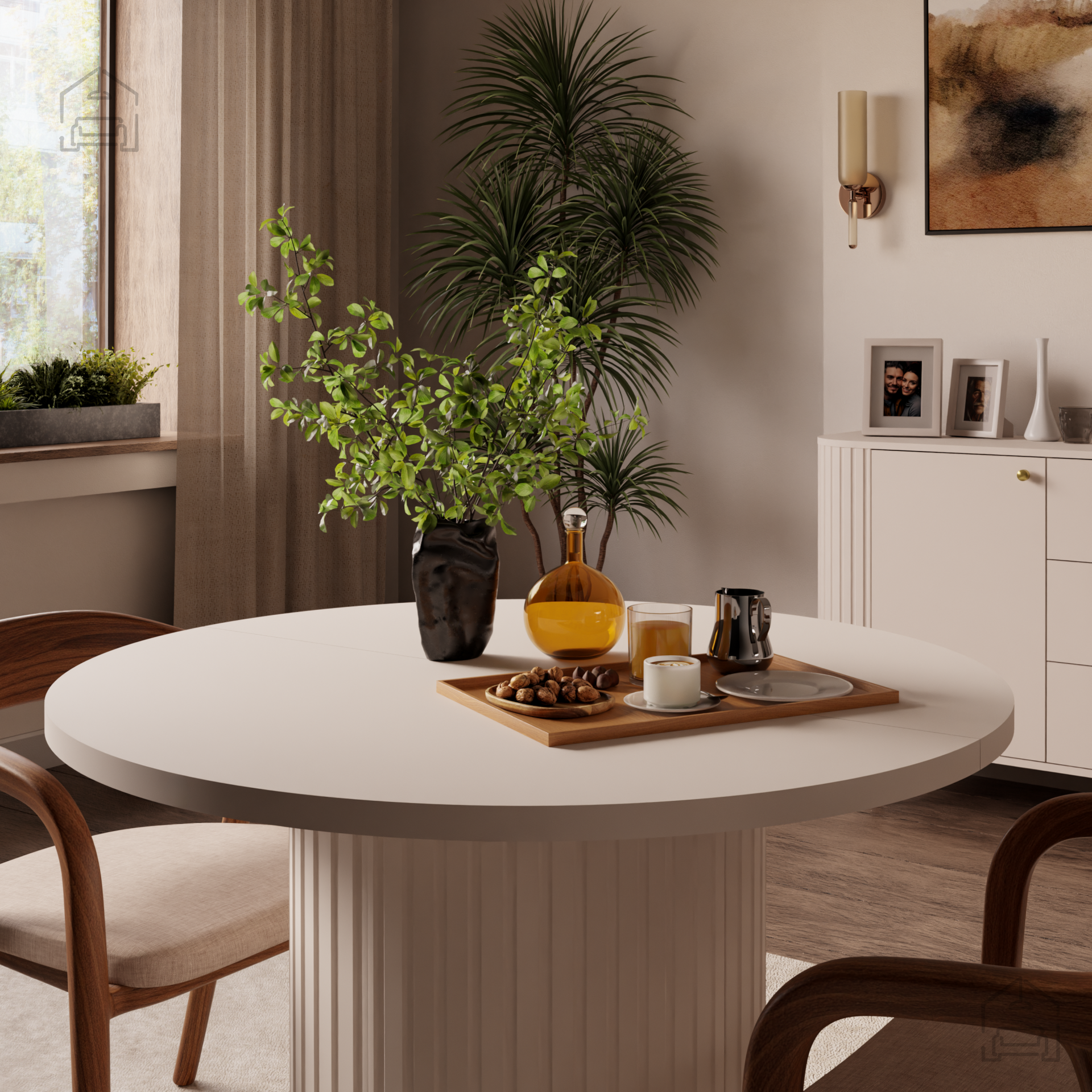 Raztegljiva jedilna miza Ovalio v peščeno bež barvi je vsestranski kos pohištva, ki združuje funkcionalnost, sodoben videz in kakovostno izdelavo. Z osnovnimi dimenzijami 100x100x75 cm se popolnoma prilega manjšim prostorom, hkrati pa s preprostim raztegljivim sistemom omogoča podaljšanje dolžine do 188 cm. Tako je idealna izbira za tiste, ki želijo prihraniti prostor, a hkrati gostiti več ljudi, ko je to potrebno.