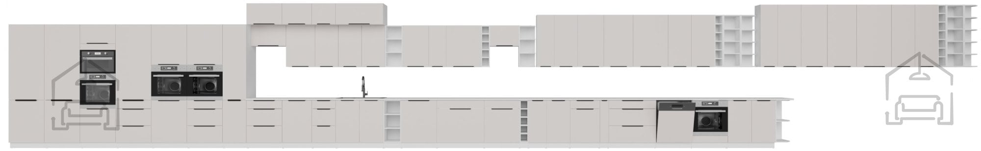 Kuhinjski sestav Como je več kot le funkcionalen pohištveni element – je osrednji del prostora, ki povezuje estetiko in praktičnost. Zasnovan je tako, da omogoča enostavno kombiniranje različnih modulov in ustvarjanje postavitev glede na potrebe uporabnika. Njegova nevtralna barvna paleta in dovršeni detajli omogočajo, da se brez težav vključi v obstoječo notranjo opremo ali postane izhodišče za popolnoma novo zasnovo kuhinje.