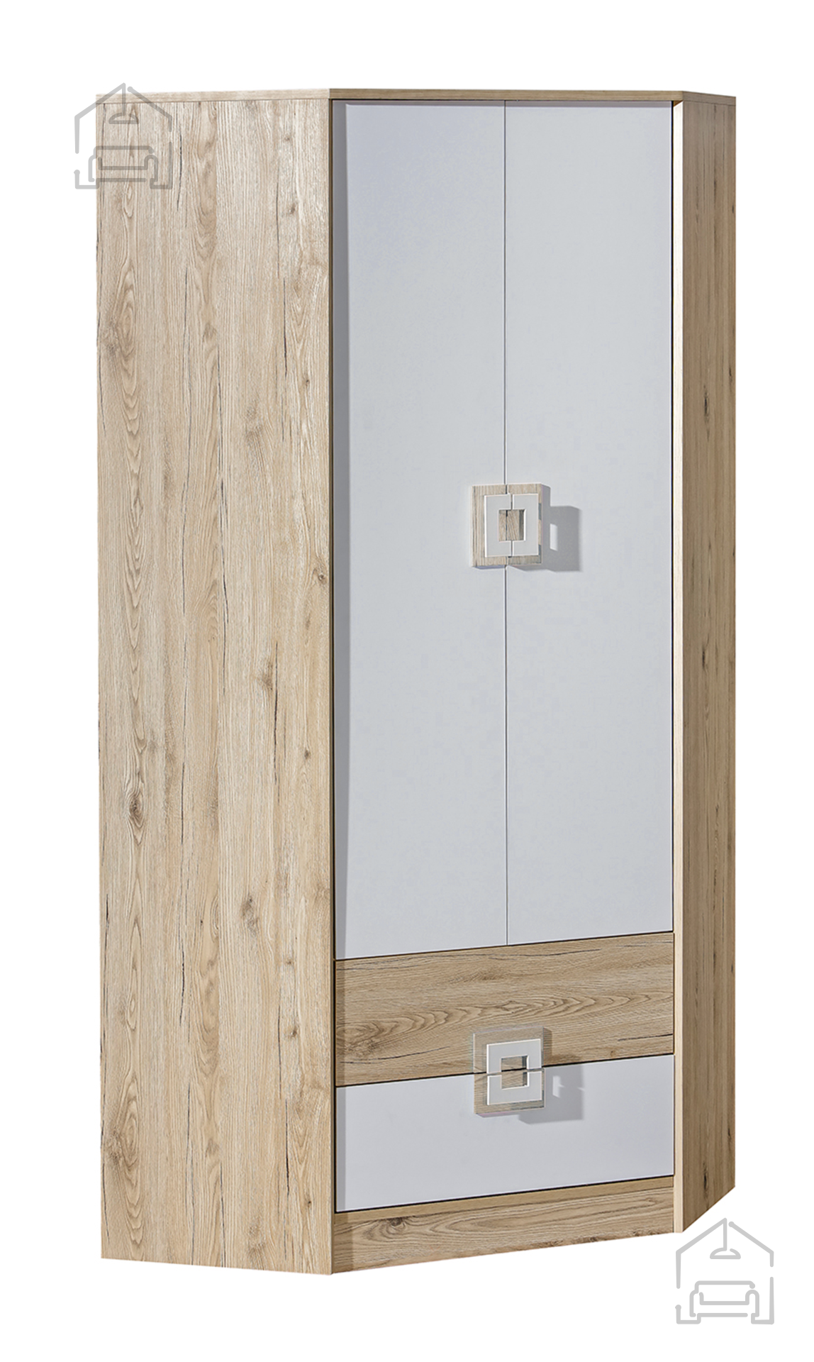 Garderobna omara se lepo ujema z drugimi kosi pohištva v podobnem lesnem dekorju ali z belimi površinami. Lahko jo kombinirate z nočnimi omaricami, komodami ali posteljami v enaki barvni shemi, da ustvarite harmoničen videz prostora. Zaradi svoje univerzalne zasnove je primerna tako za mladinske sobe kot za spalnice in predsobe, kjer je potrebna dodatna shranjevalna površina.