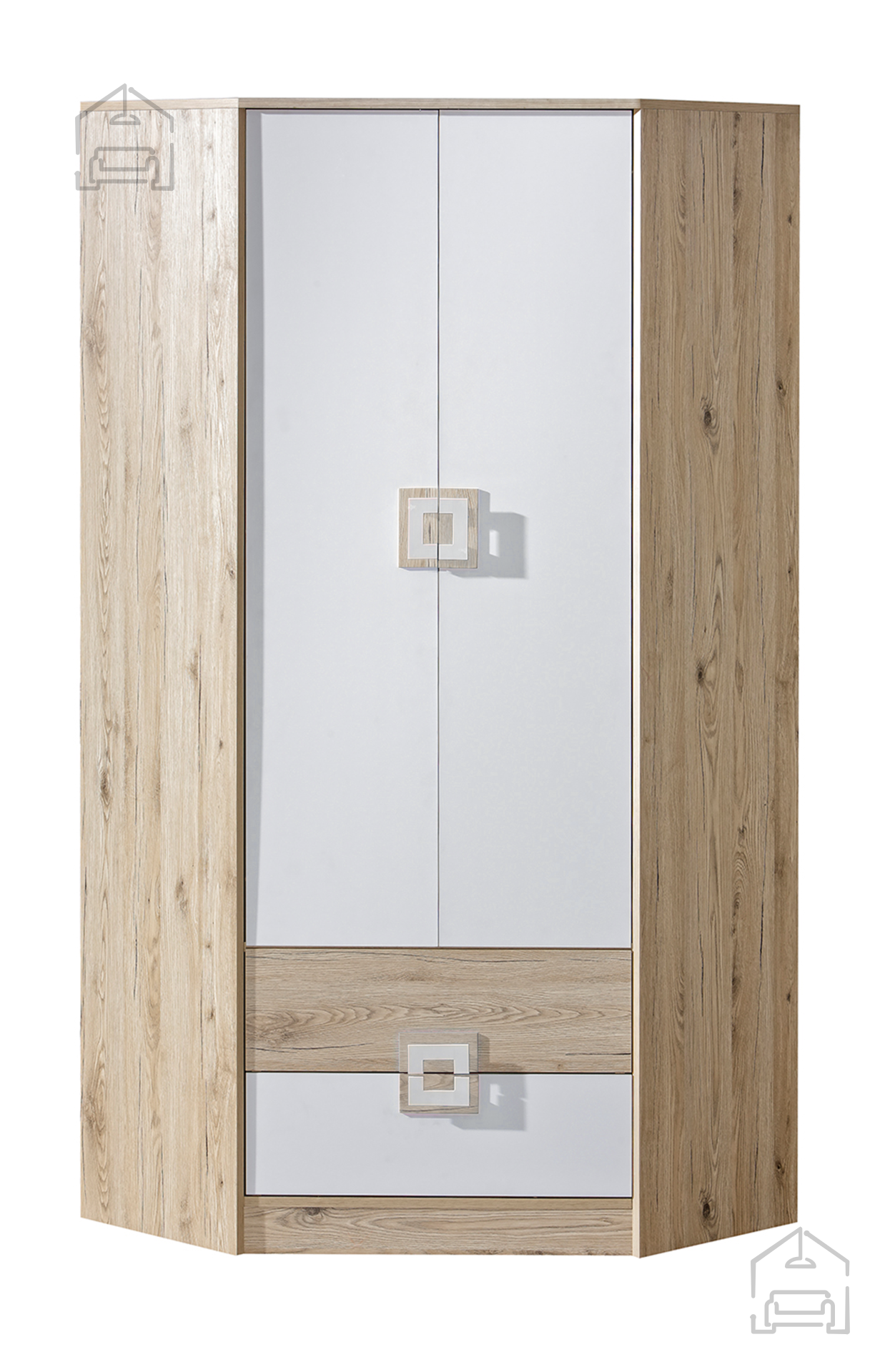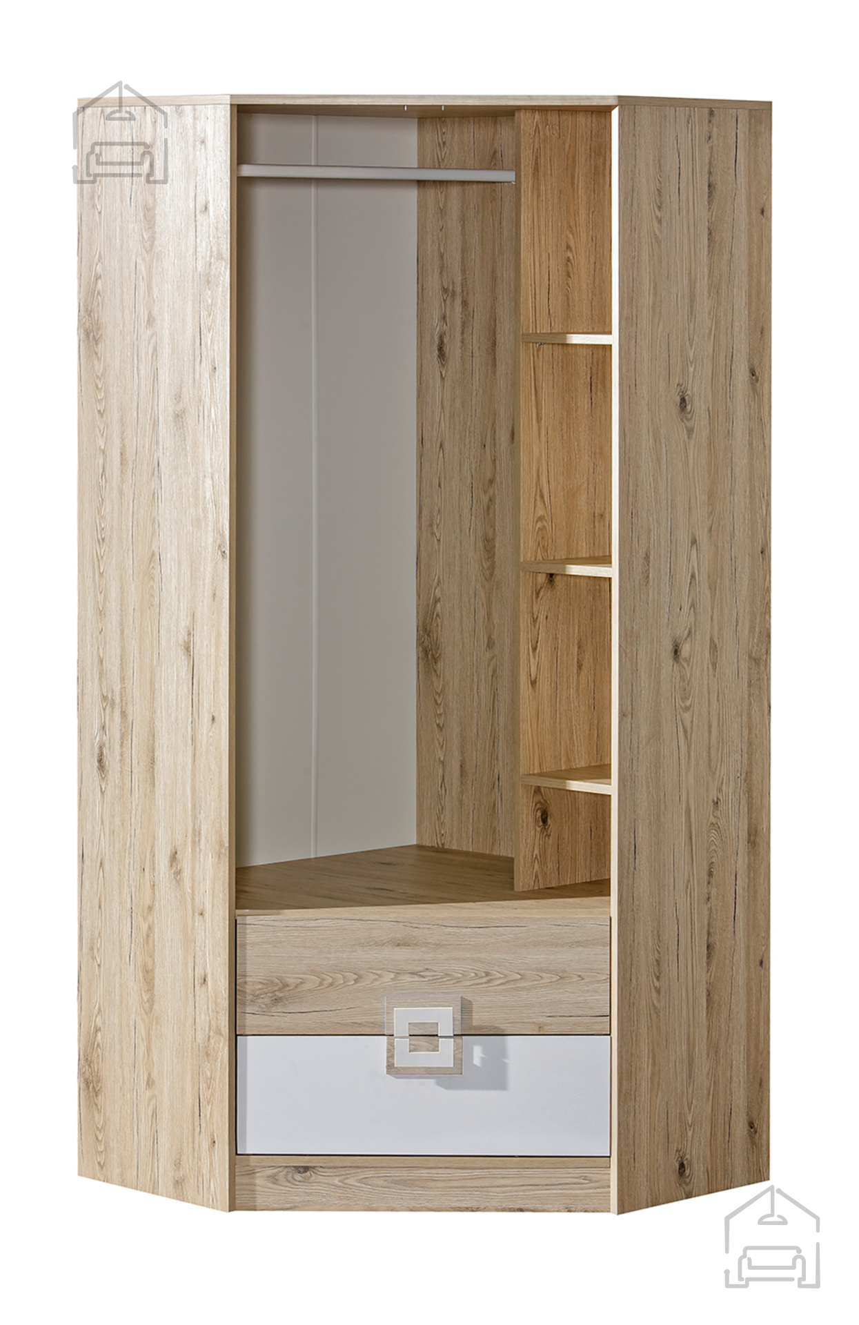Kotna garderobna omara Nico 2 je praktična rešitev za vsak dom, kjer je prostor dragocen. S svojo zasnovo v obliki kota omogoča učinkovito izrabo prostora, hkrati pa ohranja preprost in sodoben videz. Izdelana je iz kakovostne iverne plošče, ki zagotavlja stabilnost in enostavno vzdrževanje. Kombinacija barv hrast in bela poskrbi za prijeten kontrast ter omogoča enostavno usklajevanje z drugo opremo v spalnici, predsobi ali garderobi. Omara prihaja iz priznane tovarne Domel, proizvedene v Poljski, kar potrjuje zanesljivo evropsko kakovost izdelave.