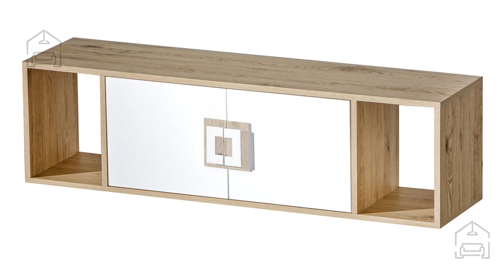 Osnova police je iverna plošča, znana po stabilnosti, enostavnem čiščenju in dobri nosilnosti. Površina v videzu hrasta prinaša toplino, bela barva pa poskrbi za svežino in kontrast. Kombinacija obeh tonov ustvarja harmoničen vizualni učinek, ki lepo dopolni dnevno sobo, predsobo ali spalnico. Zaradi zaščitne površinske obdelave je polica odporna proti vsakodnevni obrabi in jo je mogoče preprosto čistiti z mehko, rahlo vlažno krpo.
