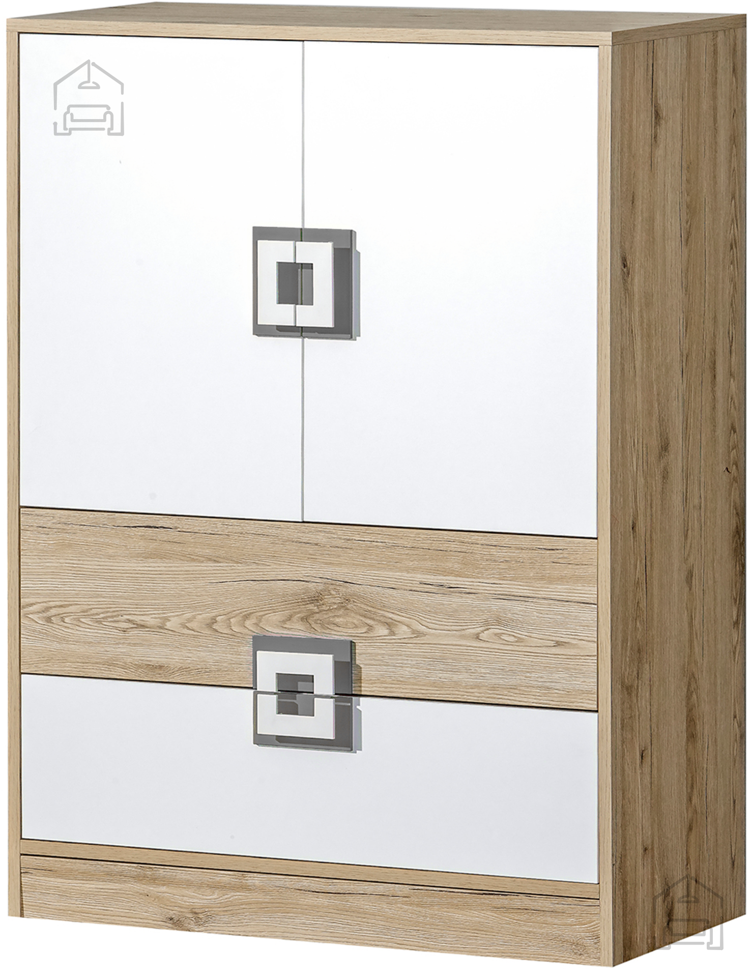 Vizualna kombinacija svetlega hrasta in belih ter sivih ročajev daje komodi Nico 9 prijeten kontrastni značaj. Topel ton lesnega dekorja ustvarja občutek domačnosti, medtem ko bele in sive podrobnosti poskrbijo za svež, sodoben pridih. Takšna barvna kombinacija omogoča enostavno ujemanje z različnimi tipi talnih oblog, sten in ostalega pohištva v prostoru. Komoda se lepo poda tako v dnevno sobo kot v spalnico, predsobo ali otroško sobo – povsod, kjer želite urejen in estetsko dovršen prostor.