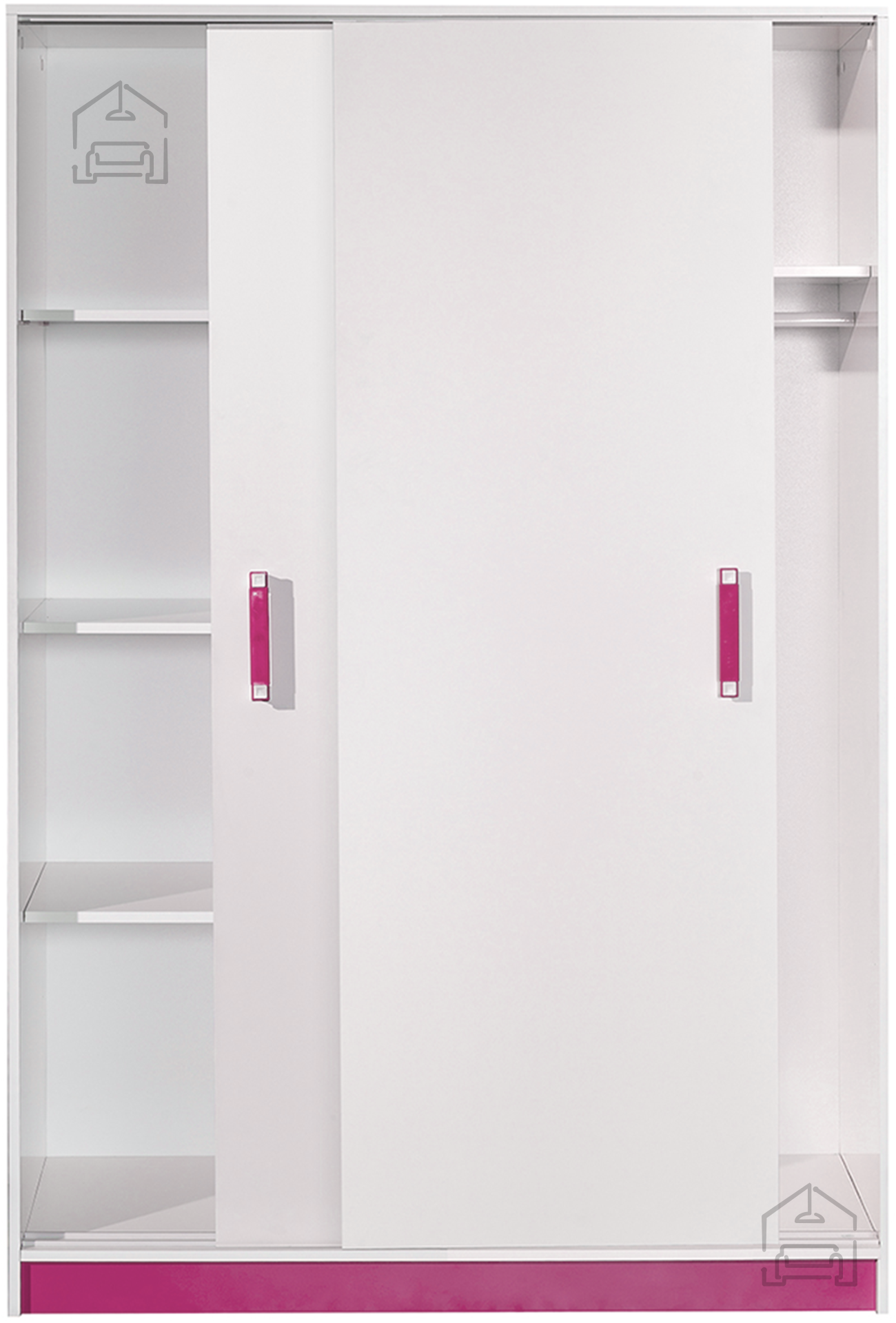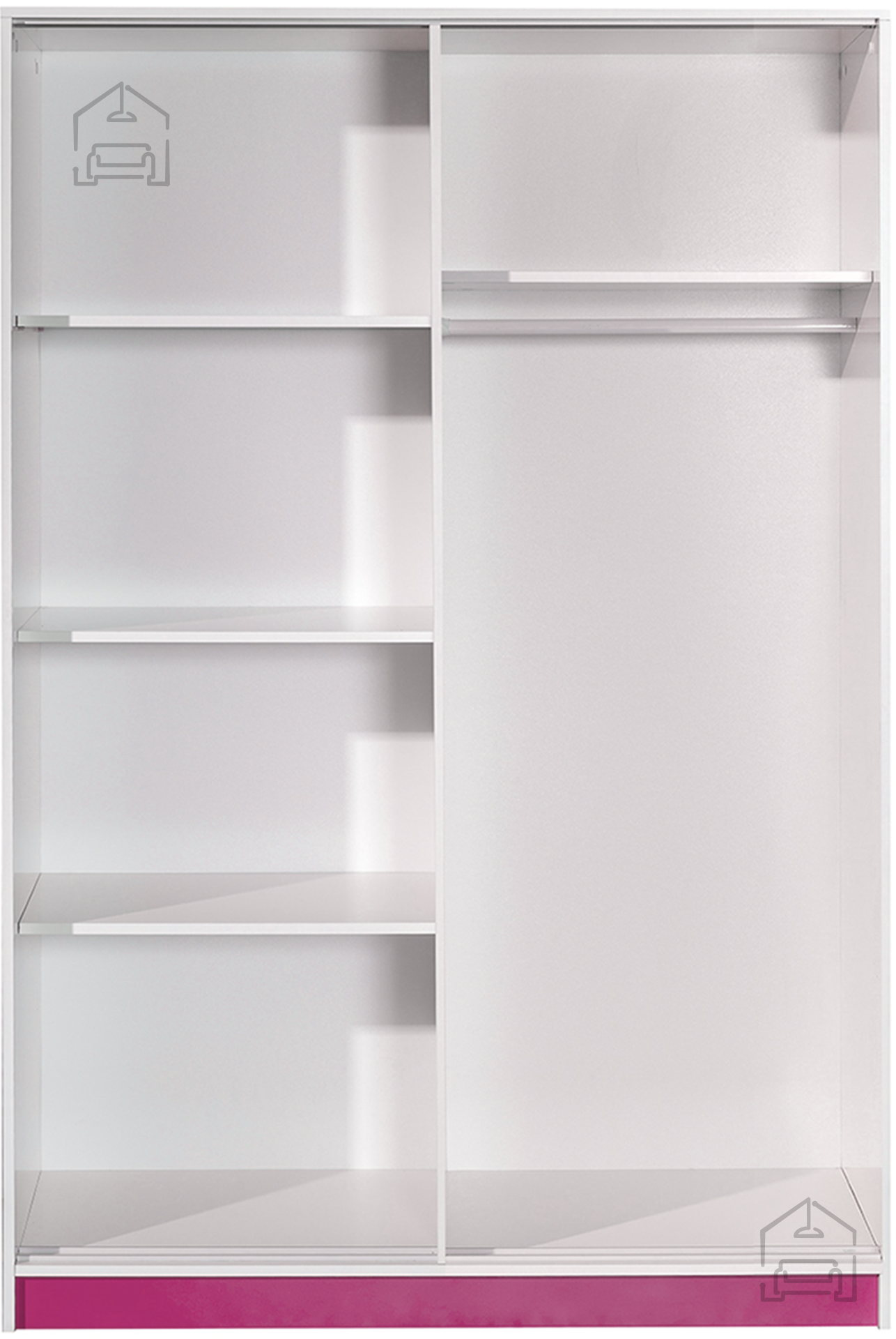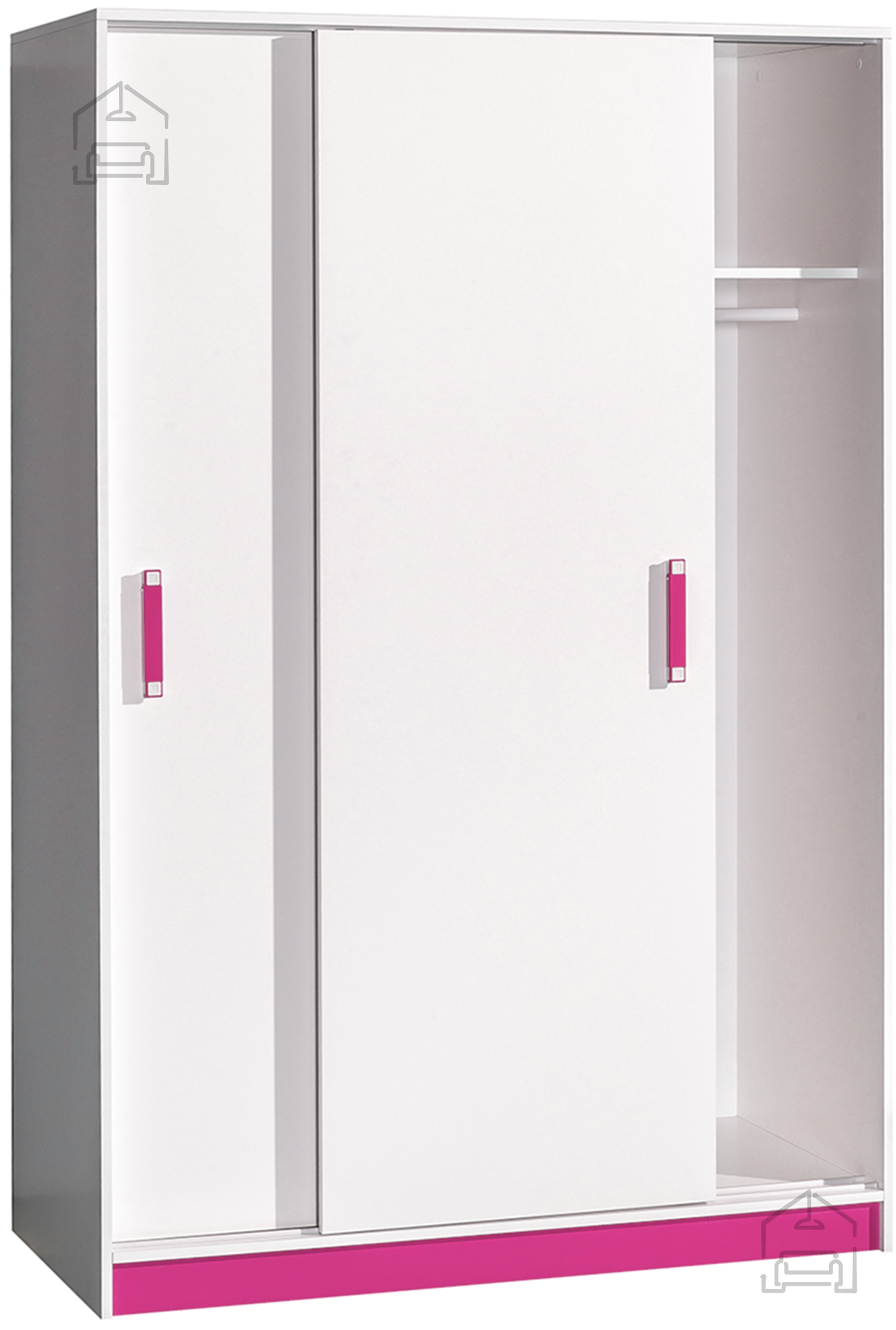 Bela in roza barva tvorita prijeten kontrast, ki v prostor vnese svetlobo in toplino. Bela površina vizualno poveča prostor, rožnati detajli pa dodajo igrivost in osebnost. Takšna kombinacija je še posebej priljubljena pri mladostnih interierjih, kjer je pomembno združiti funkcionalnost z estetiko. Omara se lepo ujema z drugimi kosi pohištva v svetlih ali pastelnih tonih ter omogoča preprosto usklajevanje z različnimi dekorativnimi elementi.