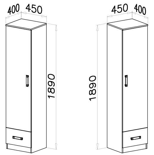 Kompaktne mere omogočajo postavitev tudi v manjše prostore, ne da bi pri tem izgubili na uporabnosti. Zaradi svoje višine omara nudi veliko prostora za shranjevanje, obenem pa ohranja vitko in elegantno silhueto. Plošče so natančno obdelane, kar omogoča enostavno sestavljanje in stabilno postavitev ob steno ali v kot prostora.