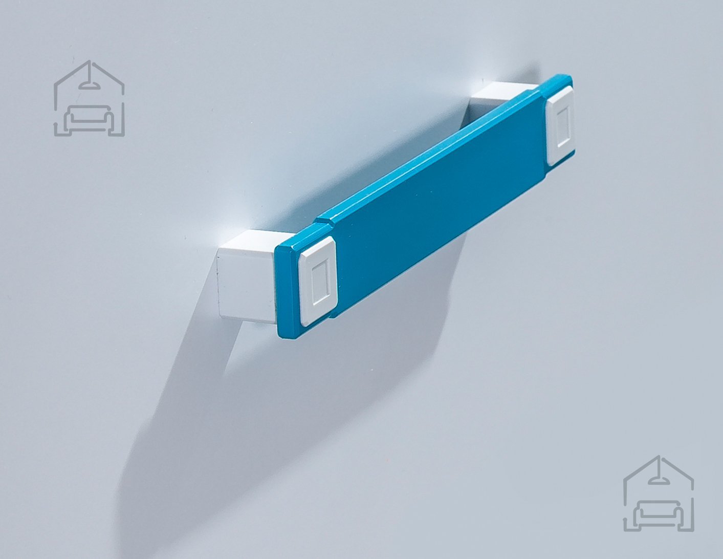 Vizualna privlačnost omare izhaja iz kombinacije bele in turkizne barve. Bela barva poudarja čistost in zračnost prostora, medtem ko turkizni poudarki dodajo svežino ter igriv, a hkrati eleganten značaj. Ročaji so prav tako turkizne barve, kar ustvari harmoničen videz celote. Takšna barvna zasnova omogoča enostavno kombiniranje z drugimi kosi pohištva v podobnih ali kontrastnih tonih.