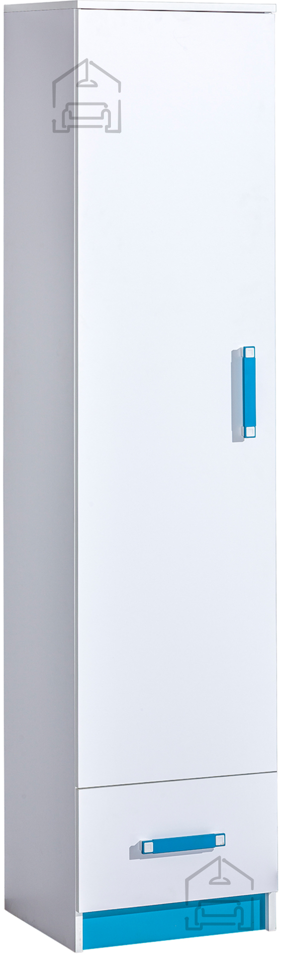 Omara Trafiko 5 je elegantna in funkcionalna rešitev za sodoben dom, ki združuje preprost dizajn z živahno barvno kombinacijo bele in turkizne. Izdelana je v tovarni Domel na Poljskem in se ponaša z natančno izdelavo ter kakovostnimi materiali, ki zagotavljajo dolgo življenjsko dobo in stabilnost. Zahvaljujoč svojim kompaktnim dimenzijam 45 × 40 × 189 cm se odlično prilagodi različnim prostorom – od mladinskih in otroških sob do predsobe ali pisarne.