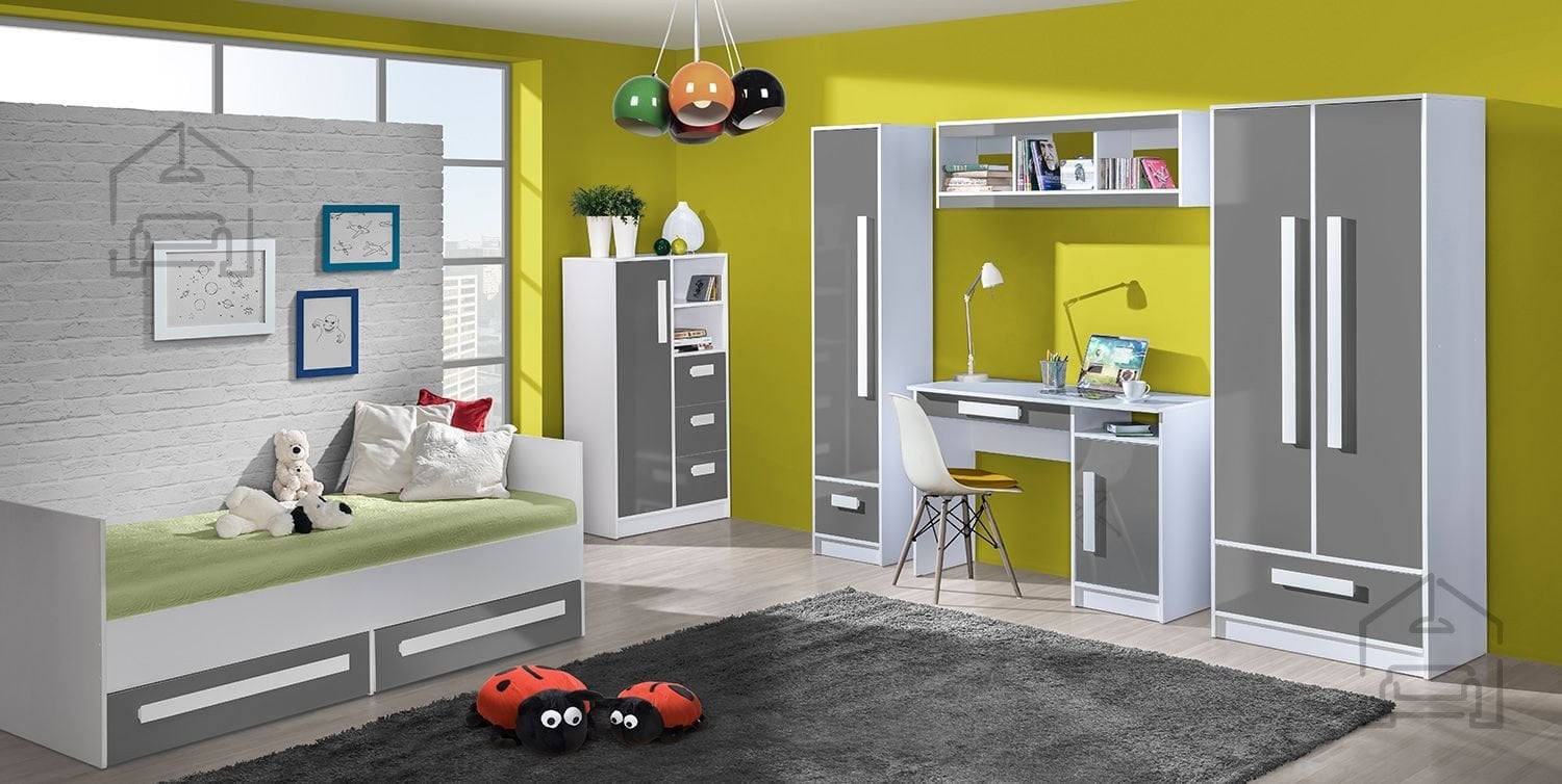 Siva barva fronte omogoča enostavno kombiniranje z drugimi barvami in materiali v prostoru. Pisalna miza Guliver 09 se lepo ujema z belim ali lesenim pohištvom ter z živahnimi barvnimi poudarki, ki jih lahko ponovimo v dodatkih, kot so stoli, police ali svetila. Zaradi preprostih linij in nevtralnih tonov je primerna tako za mladinske sobe kot tudi za domače pisarne, kjer je pomembna urejenost in estetska skladnost.