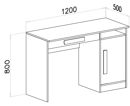Dimenzije 120×50×80 cm ponujajo dovolj delovne površine za računalnik, pisarniške pripomočke ali šolske potrebščine, ne da bi miza zavzela preveč prostora. Predali in police so opremljeni z krogličnimi vodili, kar zagotavlja gladko in tiho odpiranje ter zapiranje. Takšen mehanizem povečuje uporabno vrednost in udobje pri vsakodnevnem delu ali učenju.