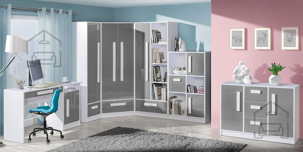 Korpus mize je izdelan v beli barvi, medtem ko je frontalni del v sivi barvi. Takšna kombinacija ustvarja prijeten kontrast, ki se lepo ujema z različnimi notranjimi stili – od minimalističnih do mladostnih sob. Posebnost modela Guliver 09 so ročaji v več barvah – beli, zeleni, rdeči, modri, vijolični ali sivi – kar omogoča, da mizo prilagodite osebnemu okusu ali barvni shemi prostora. Ročaji so izdelani iz kakovostnega sintetičnega materiala, ki je prijeten na dotik in hkrati trpežen.