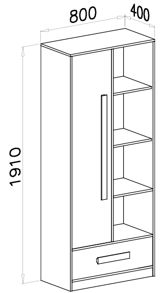 Dimenzije regala znašajo 80×40x191 cm, kar pomeni, da nudi dovolj prostora za shranjevanje knjig, map, dekorativnih predmetov ali igrač, hkrati pa ne zavzema preveč talne površine. Njegova višina omogoča maksimalno izkoriščenost vertikalnega prostora, zato je primeren tudi za manjše sobe. Police so opremljene z krogličnimi vodili, ki zagotavljajo gladko in tiho premikanje ter stabilnost, ko se regal uporablja za shranjevanje težjih predmetov.