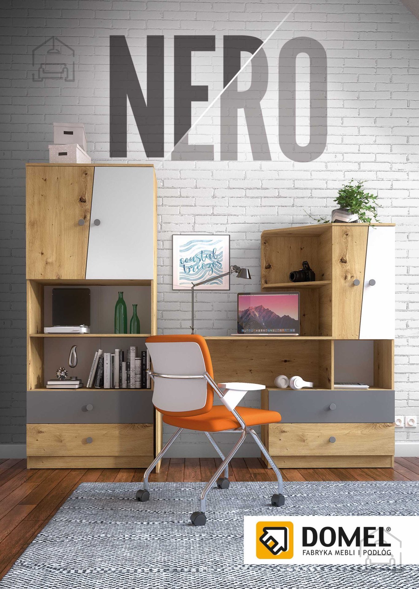 Otroška soba Nero je funkcionalna in estetsko dovršena rešitev za opremo otroške ali mladinske sobe. Izdelana je iz kakovostnih ivernih laminiranih plošč debeline 16 mm, ki zagotavljajo stabilnost in dolgo življenjsko dobo pohištva. Kombinacija topline dekorja artisan hrasta in elegantnih mat površin v beli, sivi ali črni barvi prinaša prijetno ravnovesje med naravnim videzom lesa in sodobno minimalistično estetiko. Proizvajalec Domel iz Poljske je pri zasnovi poskrbel za preprostost linij, praktičnost uporabe in možnost ustvarjanja različnih barvnih kombinacij, ki se prilagodijo značaju prostora in otrokovim željam.