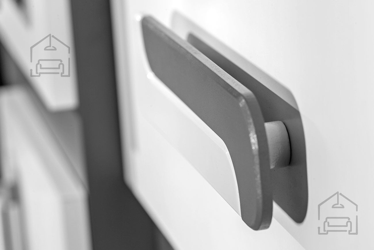 Barvna kombinacija je sodobna in univerzalna: korpus v antracitni barvi se harmonično dopolnjuje z belo fronto, kar ustvarja prijeten kontrast, primeren za različne stile notranje opreme – od minimalističnega do industrijskega. Ročaji v kombinaciji bela/antracit dodajo subtilen vizualni poudarek in hkrati omogočajo udoben oprijem.