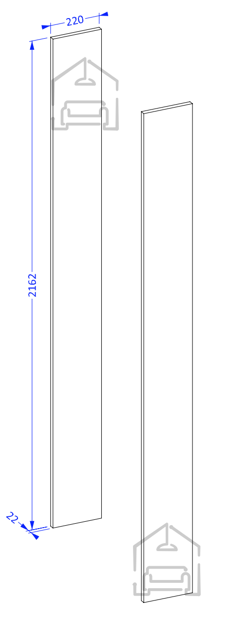 Vsaka stranica meri 22x2x216 cm, kar omogoča natančno prileganje k regalu Terra. Dimenzije so prilagojene tako, da zagotavljajo optimalno stabilnost in vizualno skladnost celotne kompozicije. Zaradi standardiziranih mer se stranici enostavno vključita v sistem sestavljanja, ne glede na to, ali gre za regal, garderobno omaro ali knjižno enoto.