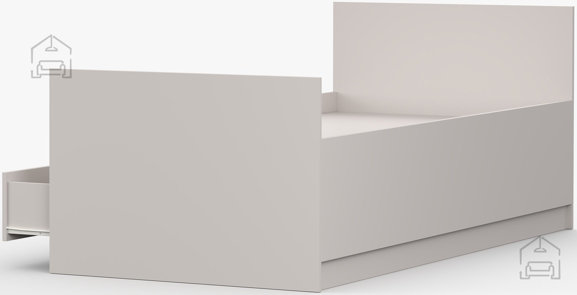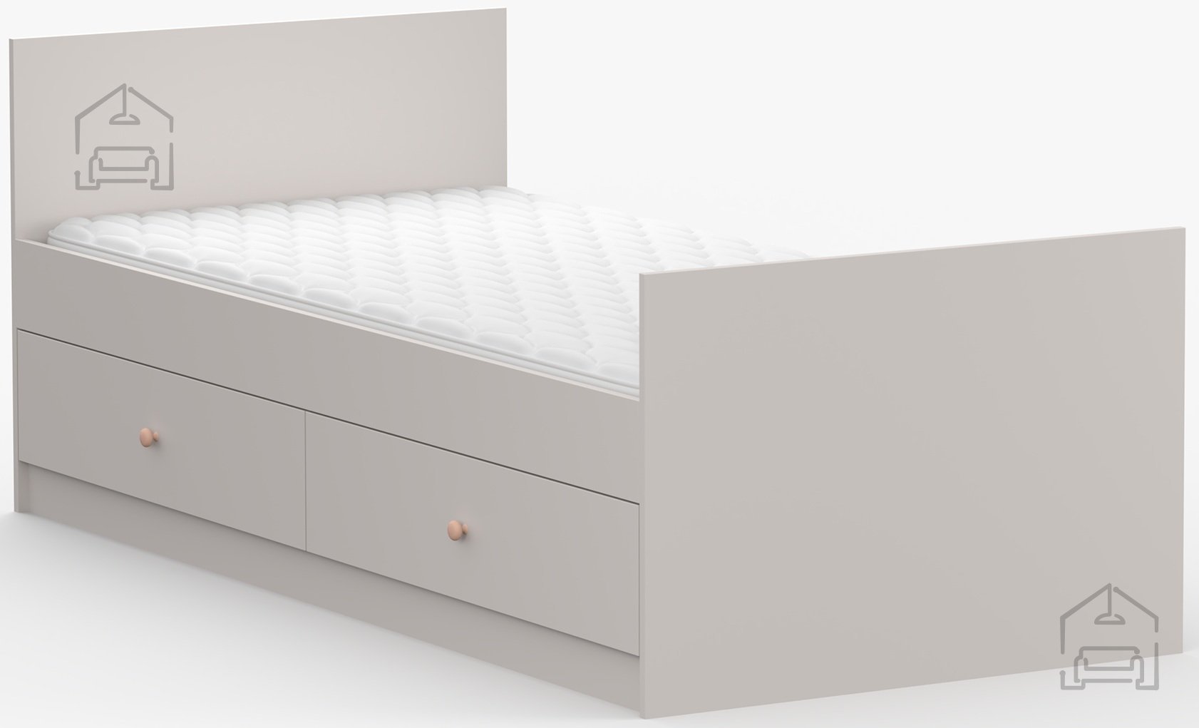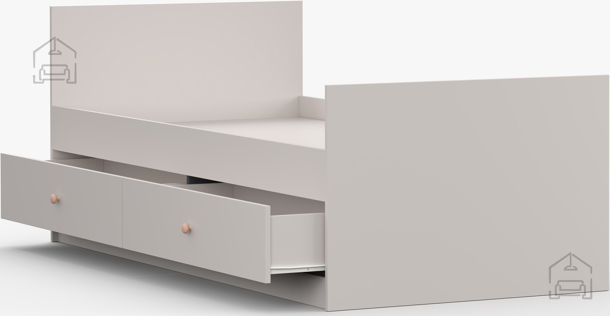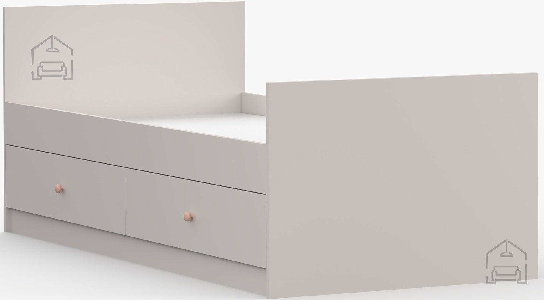 Otroška postelja Olaf v elegantni barvi kašmir prinaša v otroško sobo pridih topline in sodobne mehkobe. Njen premišljen dizajn, nežni odtenki in kontrastni ročaji v roza ter antracitni barvi ustvarjajo prijetno okolje, v katerem se otrok počuti varno in sproščeno. Postelja je izdelana iz kakovostnih laminiranih plošč, kar zagotavlja trdnost, enostavno čiščenje in dolgo življenjsko dobo. Funkcionalnost dopolnjuje prostoren predal, namenjen shranjevanju posteljnine ali igrač, s čimer soba ostane urejena in pregledna.