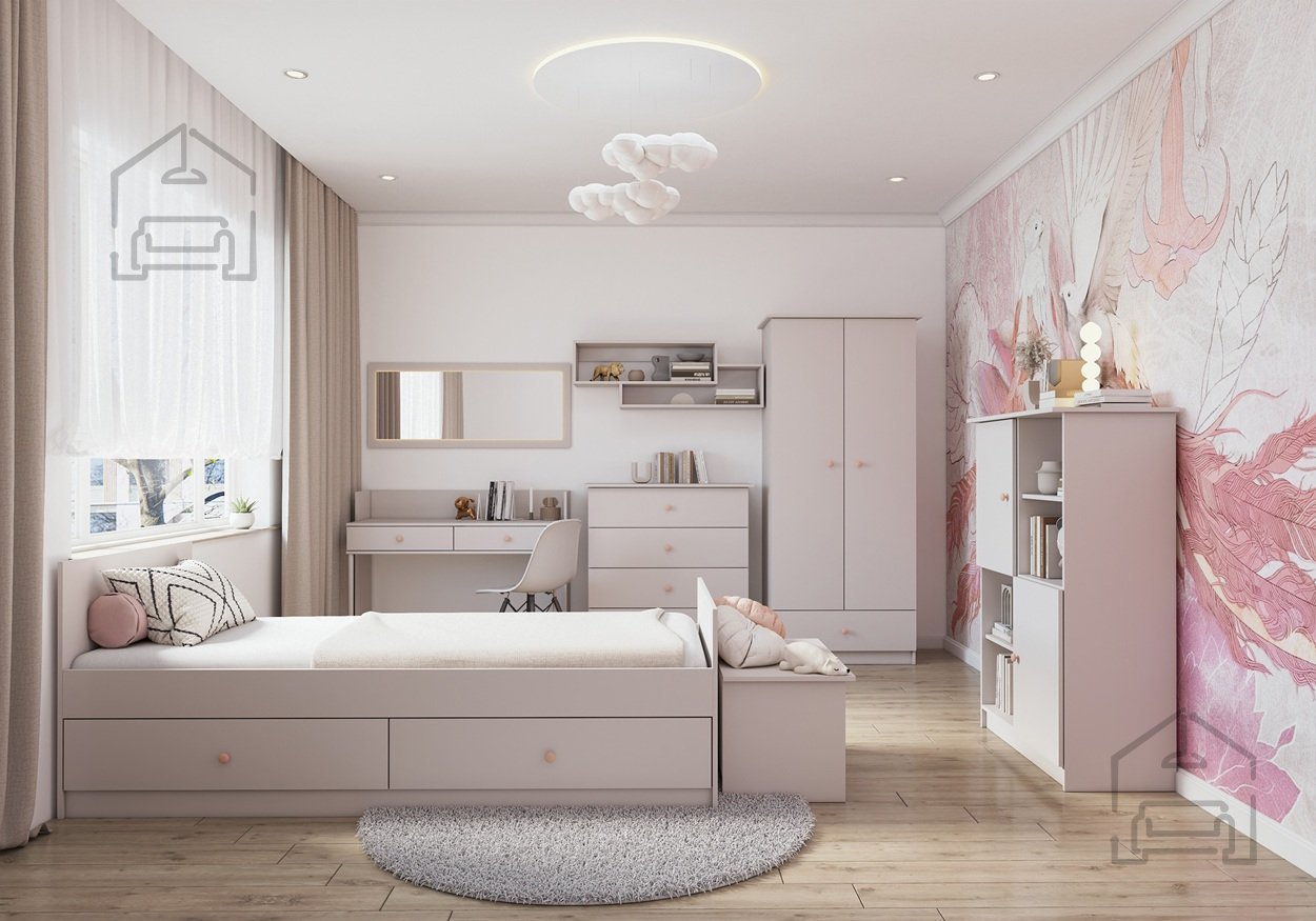 Model Olaf se odlično ujema z drugimi kosi pohištva iz iste linije ali s podobnimi kosi v barvi kašmir. Zaradi svoje preproste oblike in nevtralne barve ga je mogoče vključiti v različne tematske zasnove – od klasičnih otroških sob do sodobnih minimalističnih prostorov. Postelja se lepo dopolnjuje z lesenimi tlemi, belimi omarami ali pastelno obarvanimi stenami, kar omogoča ustvarjanje harmoničnega in mirnega okolja.