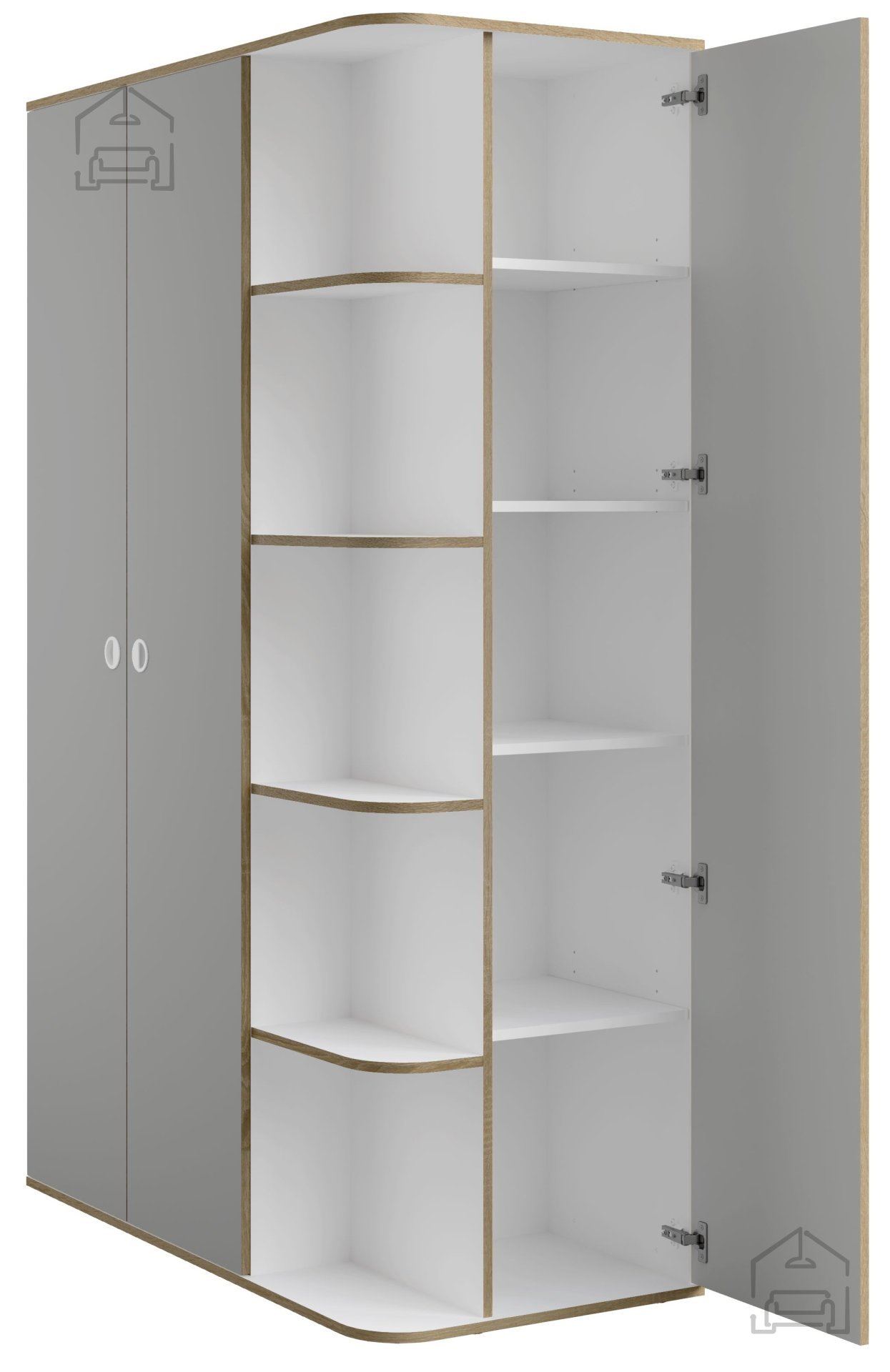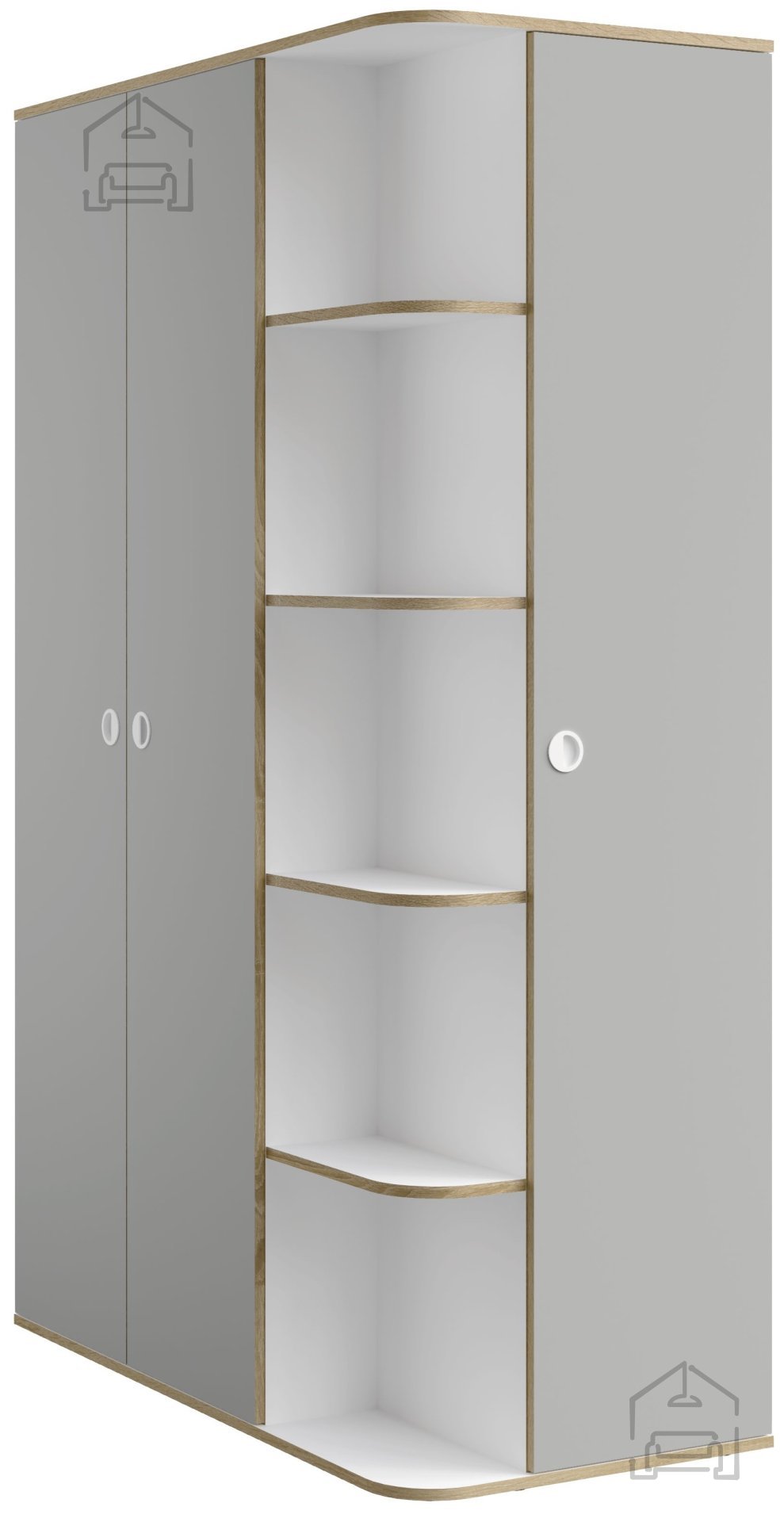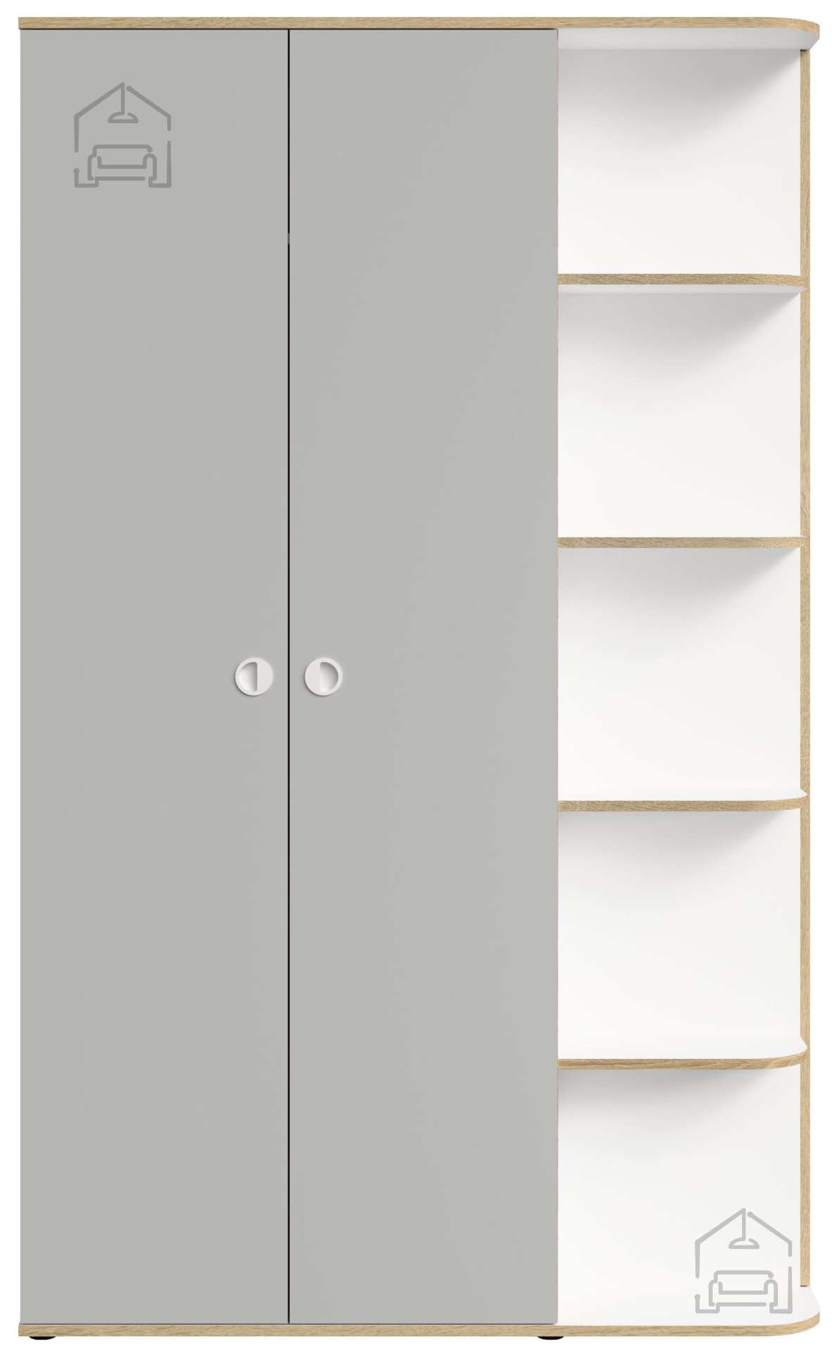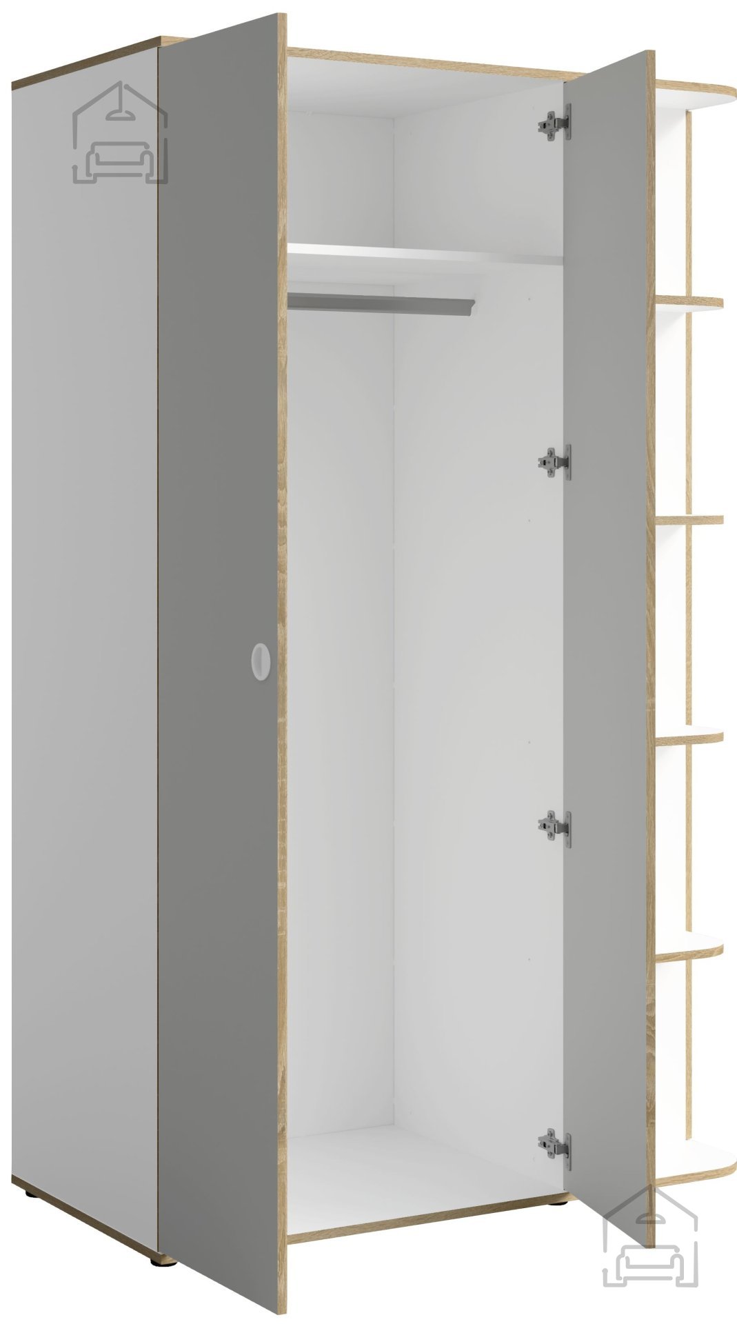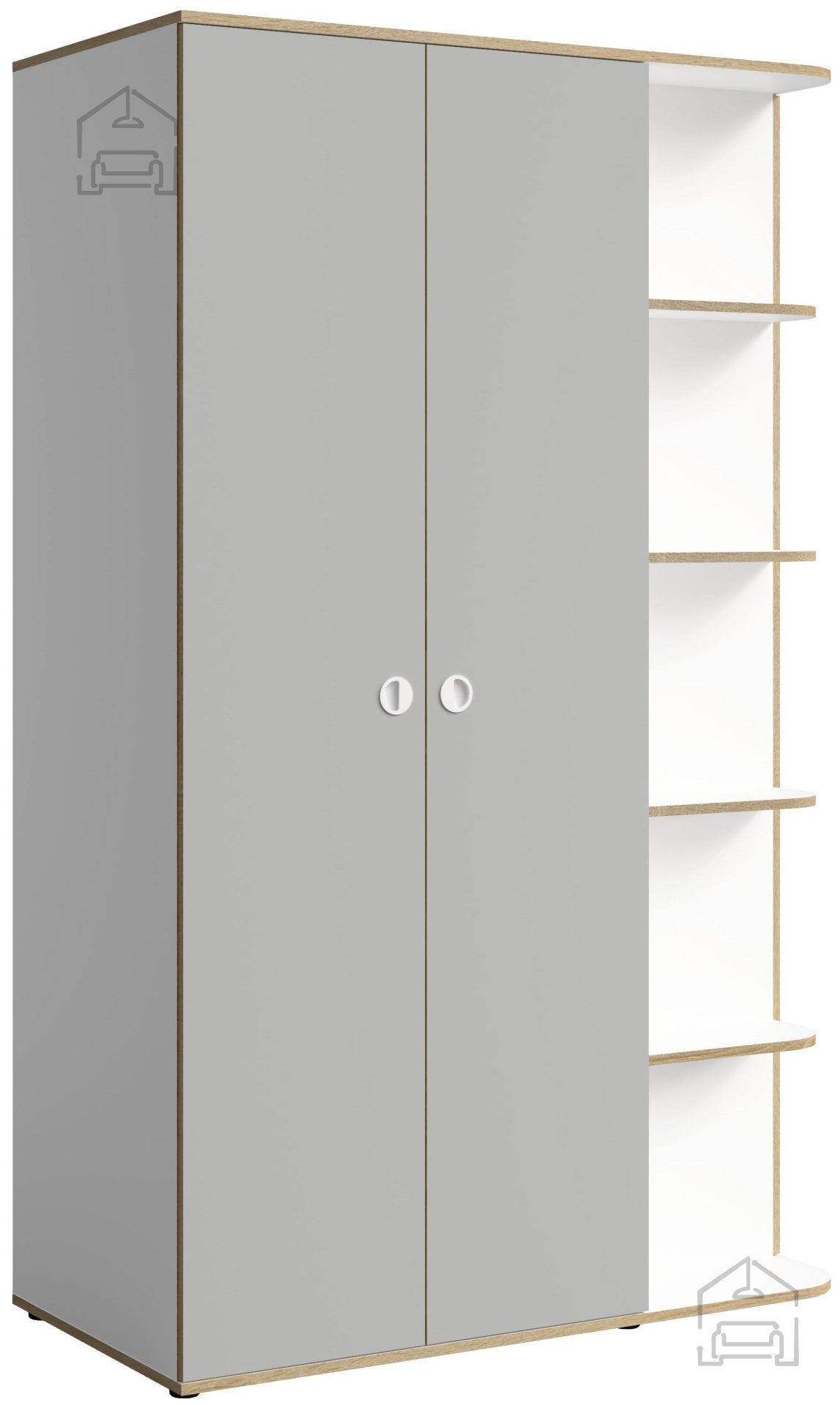 Siva in bela barva tvorita uravnotežen kontrast, ki se lepo ujema z različnimi barvnimi shemami prostora. Siva barva deluje umirjeno in sodobno, bela pa poskrbi za občutek svežine in prostornosti. Takšna kombinacija je priljubljena izbira v mladinskih sobah, spalnicah ali garderobah, kjer se funkcionalnost prepleta z estetsko dovršenostjo.