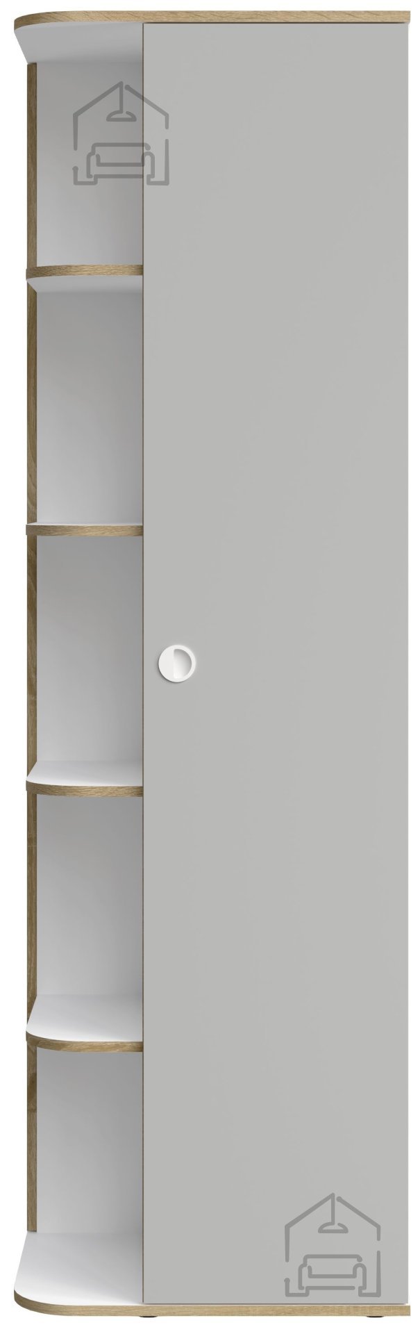 Garderobna omara Pinio znamke Meblosiek je ustvarjena z mislijo na funkcionalnost in estetiko sodobnega doma. Izdelana je iz kakovostne laminirane iverne plošče debeline 16 mm, kar zagotavlja trdnost in dolgo življenjsko dobo pohištva. Kombinacija barv siva/bela omogoča enostavno vključitev v različne stile notranje opreme – od minimalističnega do mladostnega skandinavskega videza.