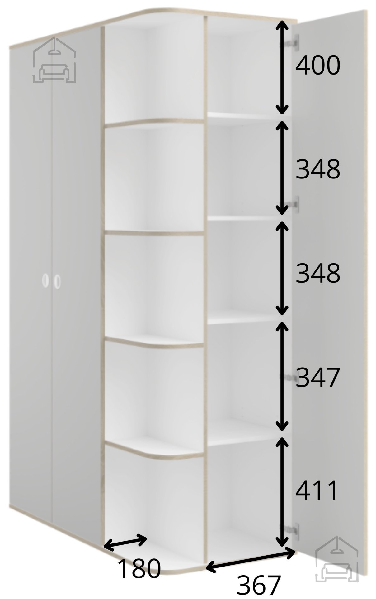 Garderobna omara Pinio je zasnovana tako, da se prilagodi različnim potrebam uporabnika. Zaradi svoje višine 196,5 cm omogoča učinkovito izrabo prostora do stropa, medtem ko širina 120 cm in globina 60 cm zagotavljata ravnotežje med kompaktnostjo in prostornostjo. Primerna je tako za otroške in mladinske sobe kot tudi za spalnice ali hodnike, kjer je potrebna dodatna shramba za sezonska oblačila ali dodatke.